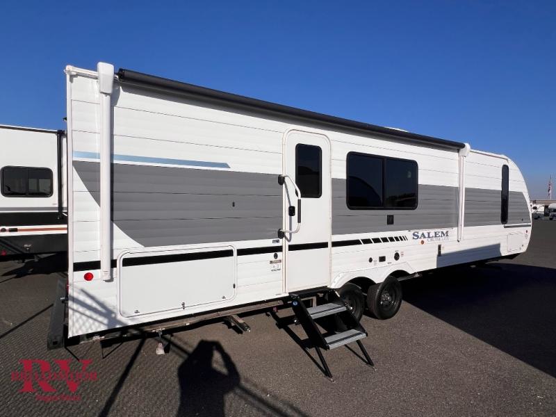 The Salem Cruise Lite travel trailers and toy haulers are value-minded units packed with great camping features! There are a variety of floorplans to choose from between two different regions. The enclosed Accessibelly will help protect against the elements and debris during transport, and the exterior retro/metal redesign is sure to be eye-catching! There are stylish roller shades inside, along with updated backsplash, elegant curtain rods and curtains, plus many more interior comforts! Choose a Salem Cruise Lite today for quality and value!