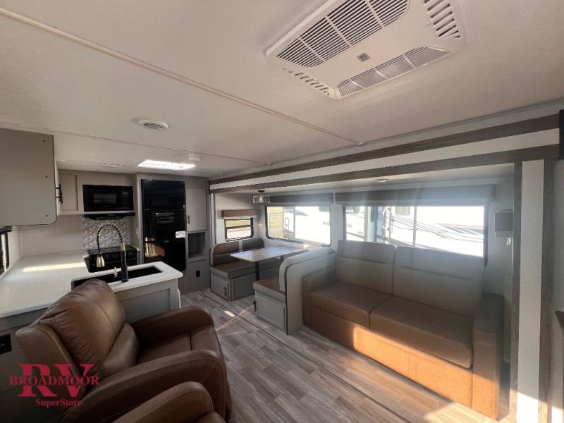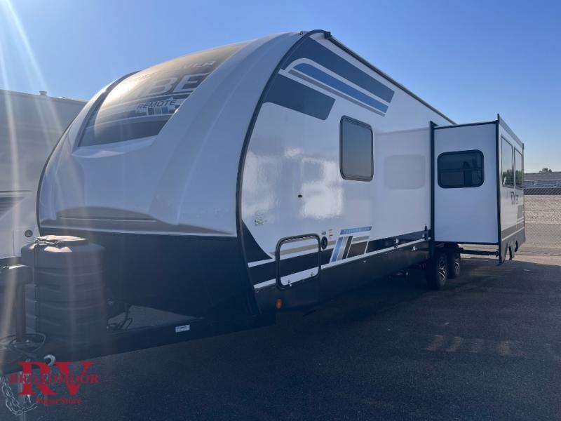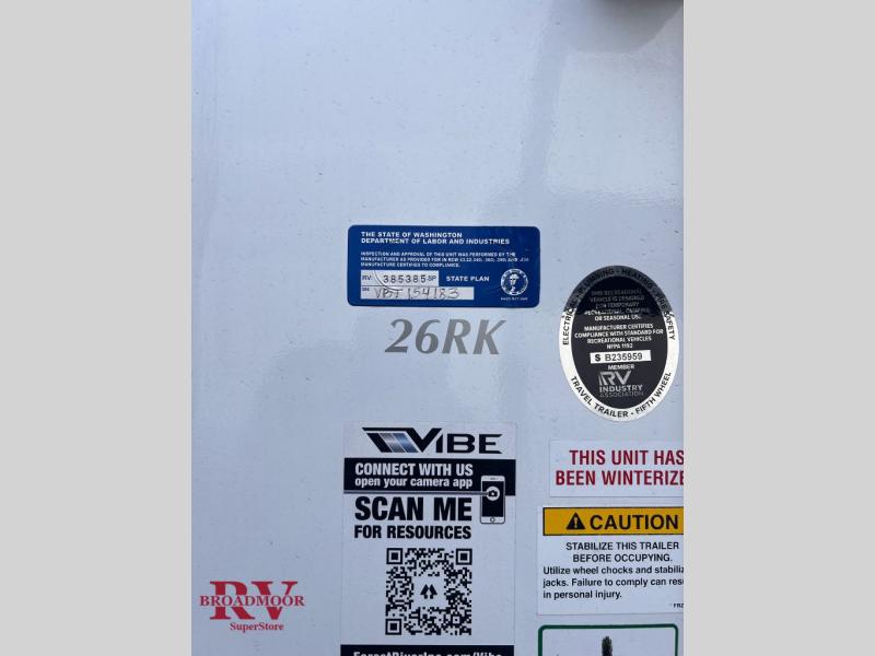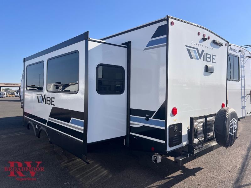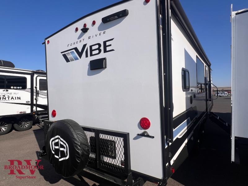 Each Vibe travel trailer by Forest River includes Hyper Lyte construction and a durable laminated "Aluma Frame" for years of use. The heated and enclosed underbelly allows you to extend your camping season, and the walk-on truss roof with XTRM PVC roofing will be easy to keep clean. Inside, you'll enjoy the custom built cabinetry, solid surface thermofoil wrapped kitchen countertops, and ultra bright LED lighting throughout. These models also include cable and satellite prep and a digital TV antenna with a booster so you can stay connected to the outside world if you choose. Make the easy choice and choose a Vibe travel trailer today!