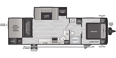 Are you looking for a travel trailer with more space, more amenities, and more sleeping space? Look no further than this Hideout! There are convenient dual entry doors for a smooth flow of traffic, a walk-through bath that will create a front master bedroom, plus bunks in the back with flip-up utility storage for your gear. And you can easily access this gear from outside using the storage door under the bunks! Everyone can meet in the main living area around the U-shaped dinette or on the sofa that be switched out for an optional tri-fold sofa or optional theater seating. And since there is TV prep you can make this space feel even more like home! The chef of your group will have everything they need to prepare meals each day, including a three burner cooktop and plenty of counter space. Head outdoors after dinner to enjoy the 21' power awning and grab a cold drink from the outdoor refrigerator!