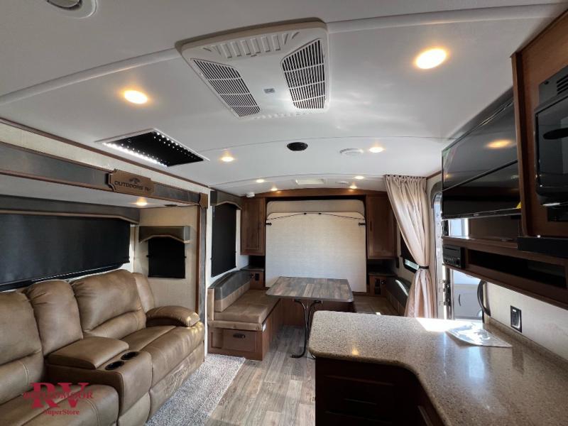 Each Creek Side Mountain Series travel trailer by Outdoors RV is designed for mountain tough four seasons camping for all your adventures. You'll find mountain extreme thermal pane windows, triple layered four seasons roof insulation, and a unique heated, insulated holding tank design. The compact design is compatible for light duty tow vehicles and smaller campsites, so you may not even need to purchase a new vehicle to start camping. Each model includes LG solid surface countertops, ultra leather furniture, and XL panoramic slide out windows for great outdoor views. These travel trailers also feature a mountain comfort premium mattress, 12V USB ports on either side of the bed, and XL bed nightstands for convenient storage.