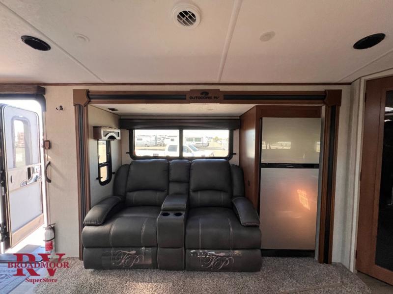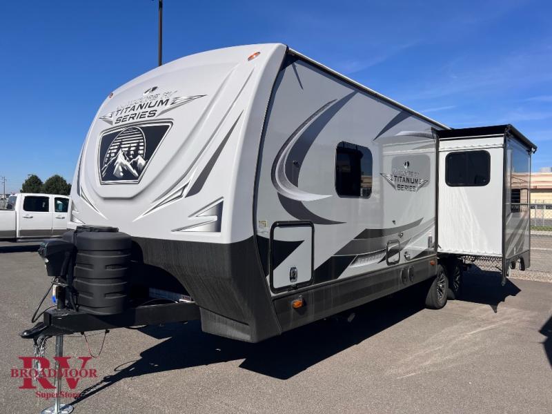 With any Black Stone Titanium Series travel trailer by Outdoors RV you will enjoy the sleek design frameless thermal pane windows, along with the silver fiberglass front cap and Titanium Series graphics package. The rugged 8' chassis with 5,200 lb. axles and XL ground clearance will make maneuvering tougher terrain easier than ever, and there is a ground control TT auto leveling system for hassle-free set-up. Each model includes LG solid surface countertops, mountain lodge interiors, hardwood slide out fascia(s), and many more comforts!