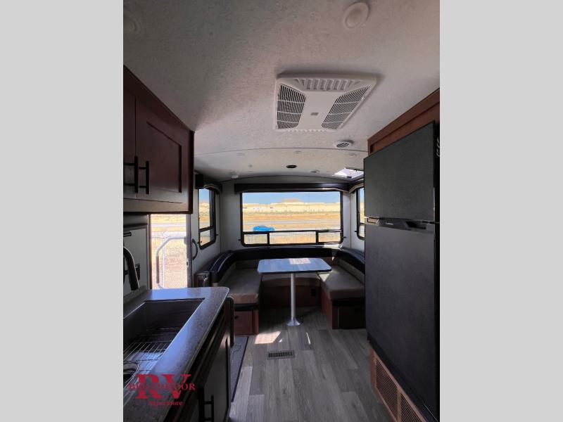 Load up your gear, clothing and food to start your journey exploring for the perfect spot to setup camp with this Back Country. You and your traveling companion will love the queen bed up front with privacy curtain, plus there is storage and USB ports on each side. If you are a family, one to two kiddos can sleep on the 40" x 84" U-shaped dinette in the rear that offers beautiful views out of the windows. The kitchen offers everything to keep everyone fed including a flip-up counter for extra work space. There is a full bathroom to keep everyone clean, plus a swing-out 32" TV for inside entertainment. And don't forget about the 17' awning when you want to relax outside with some protection from the sun.