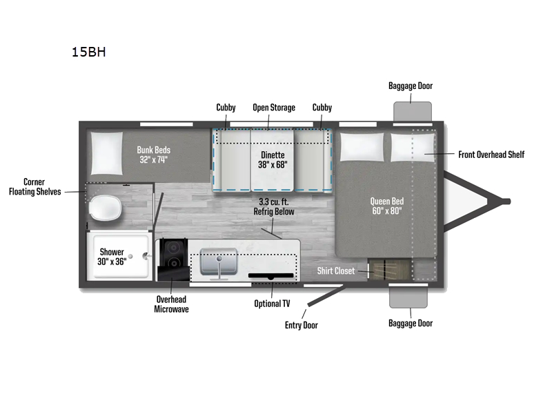 Winnebago Access travel trailer 15BH highlights: