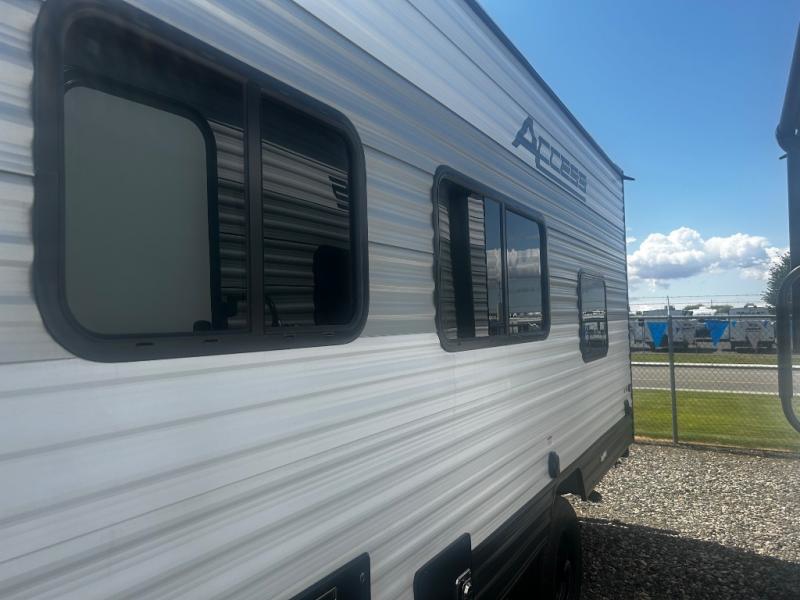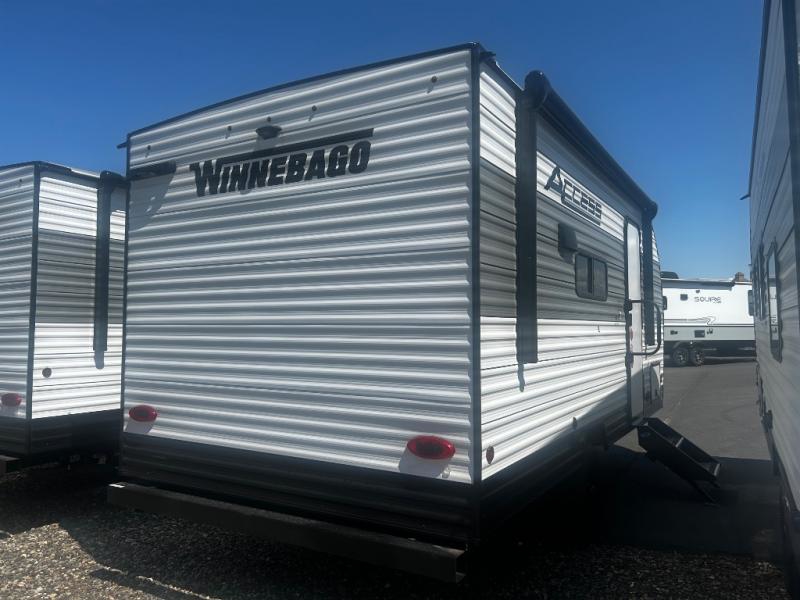 With any Winnebago Access travel trailer you will find thoughtful, clean, and contemporary designs filled with premium features that all have come to expect on any Winnebago towable. You will appreciate the stylish exterior aerodynamic front profile and durable sidewall metal for greater aerodynamics plus strength and durability. With a fully enclosed underbelly that comes with radiant foil insulation, you can easily extend your camping season into the colder months without worrying about having frozen pipes. On the inside, a foot flush toilet, roller shades, abundant storage, and spacious living areas making every camping trip more enjoyable. Make your choice today and Access your next adventure!
