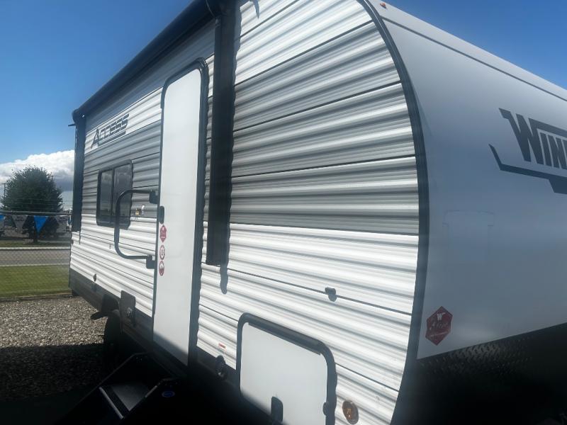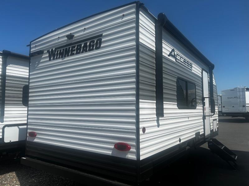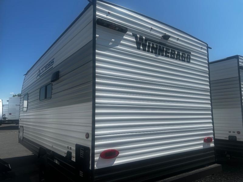 With any Winnebago Access travel trailer you will find thoughtful, clean, and contemporary designs filled with premium features that all have come to expect on any Winnebago towable. You will appreciate the stylish exterior aerodynamic front profile and durable sidewall metal for greater aerodynamics plus strength and durability. With a fully enclosed underbelly that comes with radiant foil insulation, you can easily extend your camping season into the colder months without worrying about having frozen pipes. On the inside, a foot flush toilet, roller shades, abundant storage, and spacious living areas making every camping trip more enjoyable. Make your choice today and Access your next adventure!