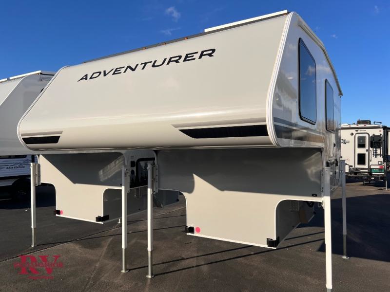 Each one of these Adventurer Manufacturing Inc. Adventurer truck campers is made to last with true four-season insulation and premium construction materials. The TRU weight transparency sticker lets you know exactly what you're getting when you choose these truck campers, and the Next Generation Happijac, manual jacks will make set up easier than ever. There are many interior comforts, including seamless edge countertops, a stainless steel sink, ample storage space, and more! There are also available options to choose to further customize your truck camper, some come take a look!