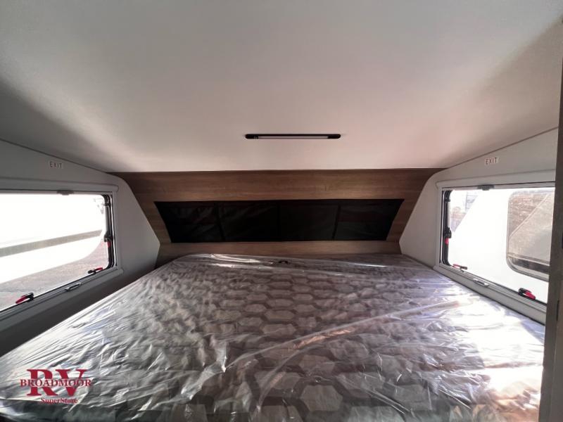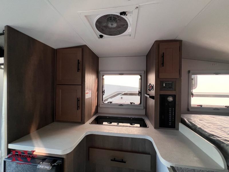 This true half-ton truck camper is lightweight, but not light on features! You can easily sleep up to five each night with the front queen bed and roll-over sofa, plus an optional bunk! The adventure locker/wet bathroom is a waterproof, modular space that doubles as a heated gear locker, making this space more versatile! In the kitchen you can make meals on the two burner stove with an integrated sink plus a Nova Kool 3.1 cu. ft. refrigerator with a freezer compartment. This unit also includes an Unbound Power Tower (UPT) with USB ports to keep you powered up, plus you can choose solar power options for off-grid capability!