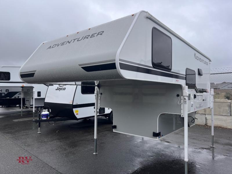 Each one of these Adventurer Manufacturing Inc. Adventurer truck campers is made to last with true four-season insulation and premium construction materials. The TRU weight transparency sticker lets you know exactly what you're getting when you choose these truck campers, and the Next Generation Happijac, manual jacks will make set up easier than ever. There are many interior comforts, including seamless edge countertops, a stainless steel sink, ample storage space, and more! There are also available options to choose to further customize your truck camper, some come take a look!