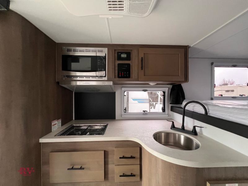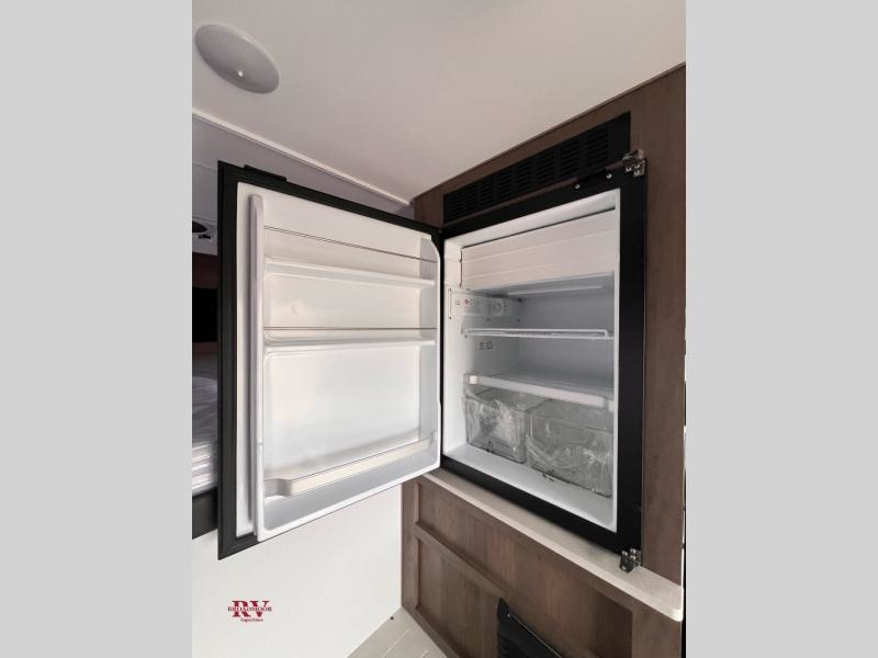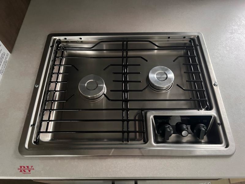 If you have one of today's heavy half-ton and larger long and short box trucks, then you need to get your hands on this truck camper! It is lightweight and affordable, plus it has a comfortable wet bath with a shower, Dometic toilet, power exhaust fan, and skylight. Get a good night's rest each night on the queen bed and keep your clothes looking their best stored in the wardrobe at the foot of the bed. You can even transform the roll-over sofa into a 42" x 68" bed for more sleeping space. You can fry up the catch of the day on the sealed two burner cooktop with residential grate and keep your beverages cold in the Dometic 3.5 cu. ft. refrigerator/freezer!