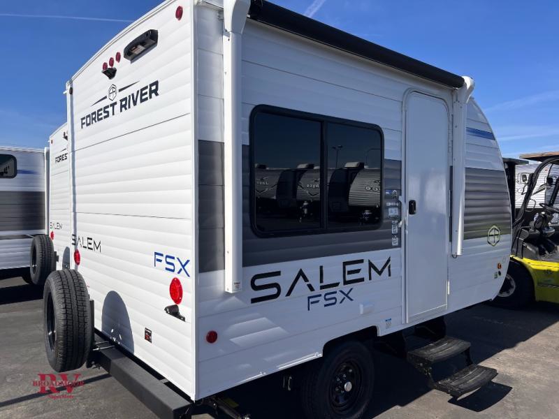 The Forest River Salem FSX travel trailers and toy hauler travel trailers are ultra comfortable and lightweight, perfect for first time or seasoned campers alike! You will love how easy it will be to relax with residential features that will make your space feel just like home, and the durable construction means you can enjoy your RV for years to come. There are a wide variety of floorplans to choose from, including couple's trailers, bunk models, and toy haulers, all with full bath and kitchen amenities and plenty of storage for all your gear!