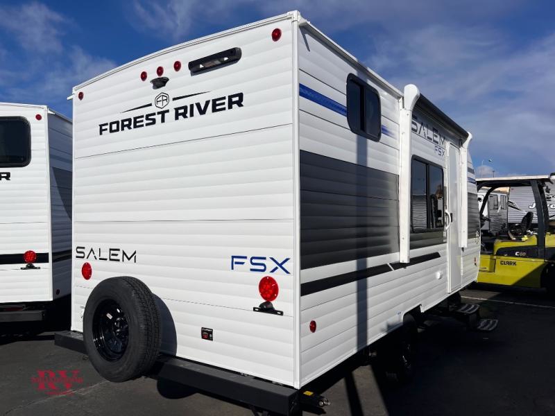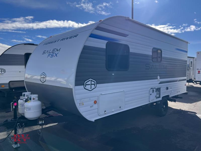The Forest River Salem FSX travel trailers and toy hauler travel trailers are ultra comfortable and lightweight, perfect for first time or seasoned campers alike! You will love how easy it will be to relax with residential features that will make your space feel just like home, and the durable construction means you can enjoy your RV for years to come. There are a wide variety of floorplans to choose from, including couple's trailers, bunk models, and toy haulers, all with full bath and kitchen amenities and plenty of storage for all your gear!