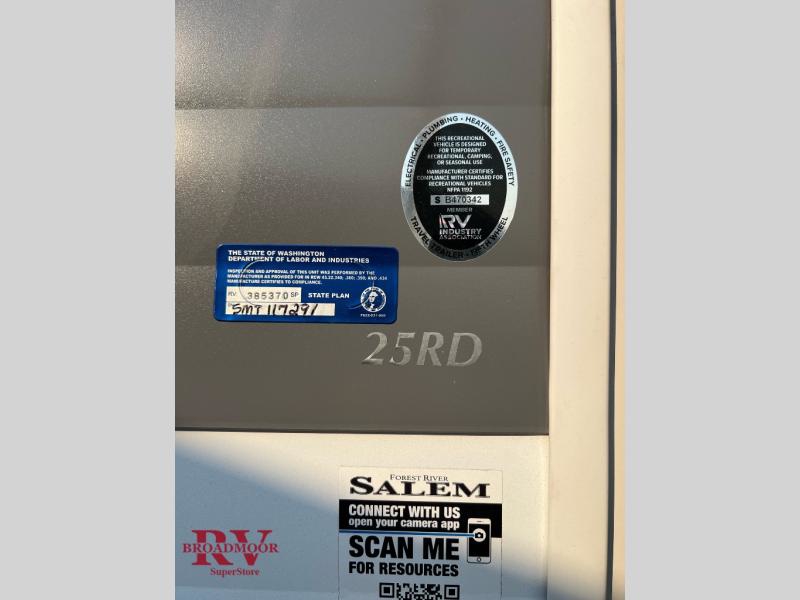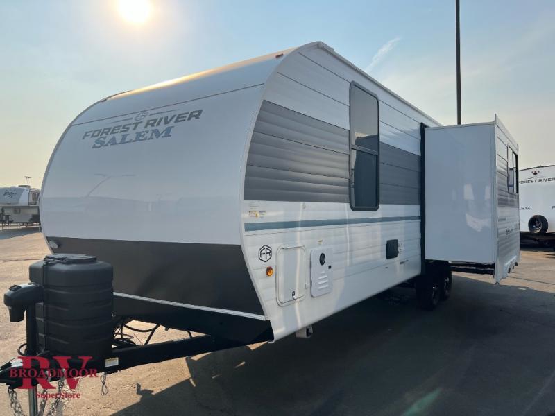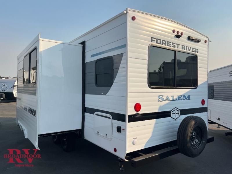 The Salem travel trailers are packed with hassle-free camping amenities! There are a variety of floorplans to choose from between three different regions. The heated and enclosed Accessibelly will help protect against the elements and debris during transport, and the exterior retro/metal redesign is sure to be eye-catching! There are stylish roller shades inside, along with updated backsplash, elegant curtain rods and curtains, plus many more interior comforts! Choose a Salem travel trailer today for quality and value!