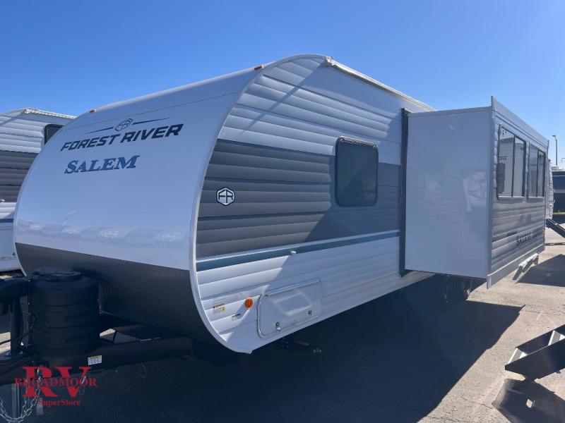 The Salem Cruise Lite travel trailers and toy haulers are value-minded units packed with great camping features! There are a variety of floorplans to choose from between two different regions. The enclosed Accessibelly will help protect against the elements and debris during transport, and the exterior retro/metal redesign is sure to be eye-catching! There are stylish roller shades inside, along with updated backsplash, elegant curtain rods and curtains, plus many more interior comforts! Choose a Salem Cruise Lite today for quality and value!