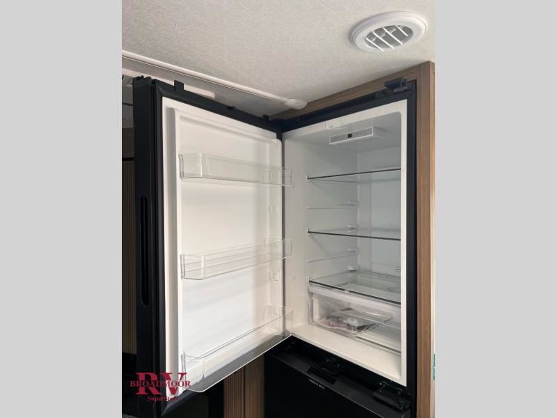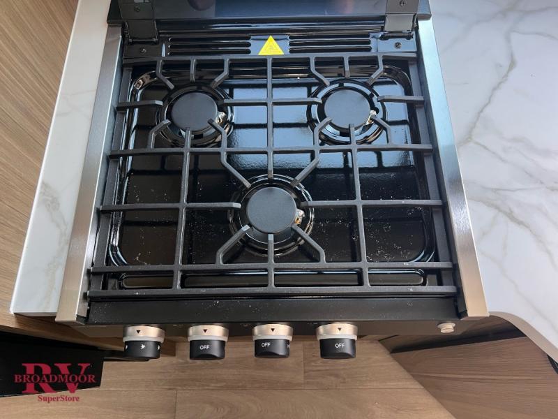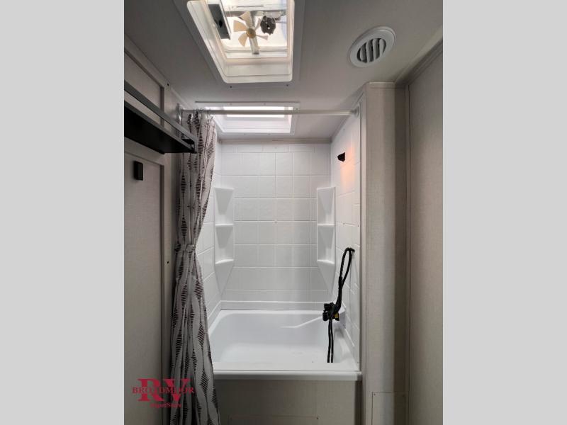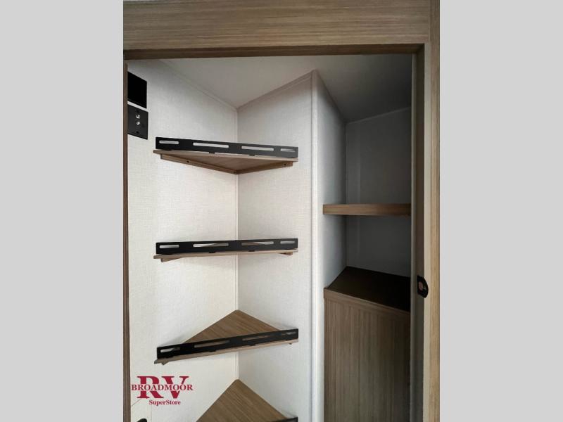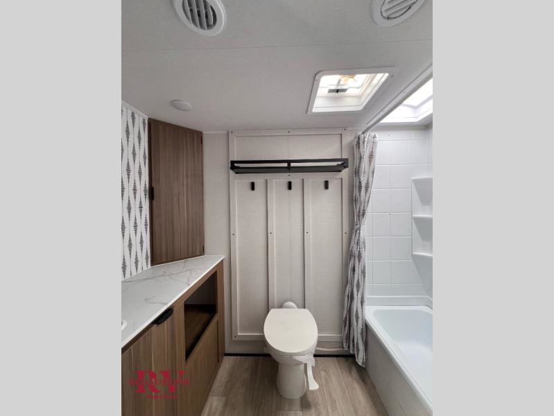 You're sure to make camping memories in this spacious travel trailer! You can sleep four to five people each night thanks to the the custom king bed with Versa Tilt in the front bedroom plus the Versa-Lounge and booth dinette within the large slide out! The full kitchen will let you make meals each day, and you'll appreciate the hidden pantry with shelves behind the fireplace. And don't overlook the full rear bath, complete with a tub/shower and ample counter space for your things.