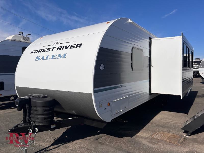 The Salem Cruise Lite travel trailers and toy haulers are value-minded units packed with great camping features! There are a variety of floorplans to choose from between two different regions. The enclosed Accessibelly will help protect against the elements and debris during transport, and the exterior retro/metal redesign is sure to be eye-catching! There are stylish roller shades inside, along with updated backsplash, elegant curtain rods and curtains, plus many more interior comforts! Choose a Salem Cruise Lite today for quality and value!