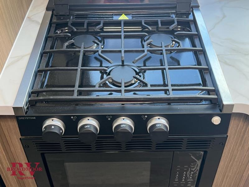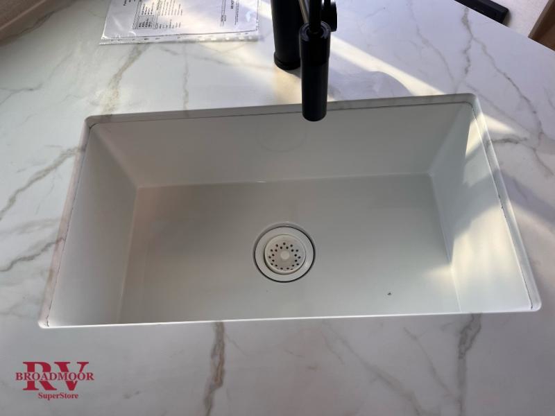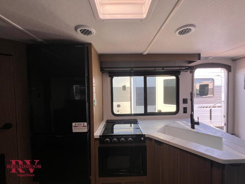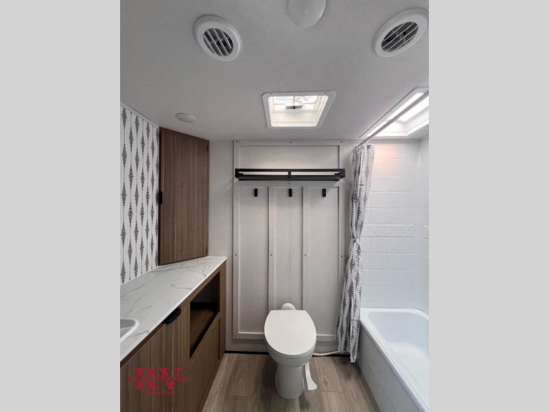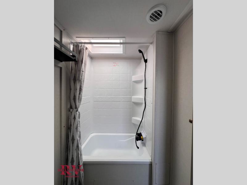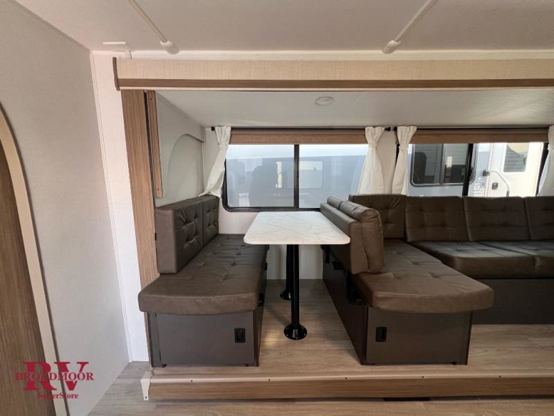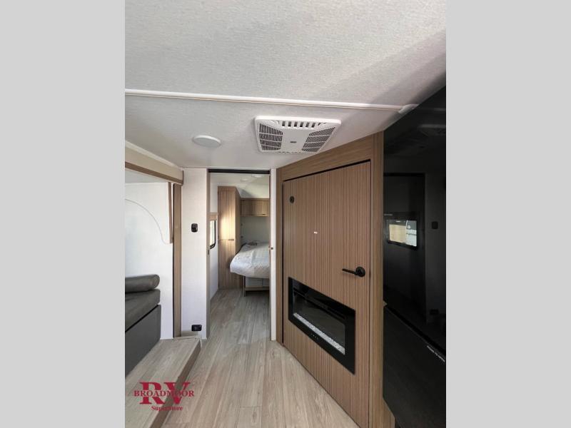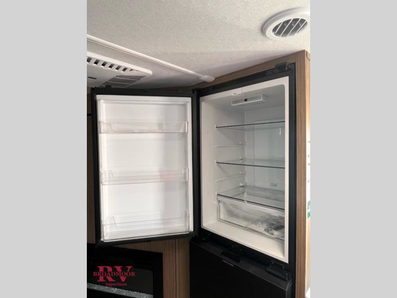 You're sure to make camping memories in this spacious travel trailer! You can sleep four to five people each night thanks to the the custom king bed with Versa Tilt in the front bedroom plus the Versa-Lounge and booth dinette within the large slide out! The full kitchen will let you make meals each day, and you'll appreciate the hidden pantry with shelves behind the fireplace. And don't overlook the full rear bath, complete with a tub/shower and ample counter space for your things.