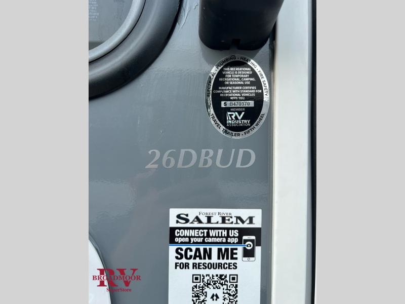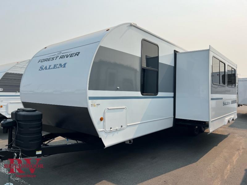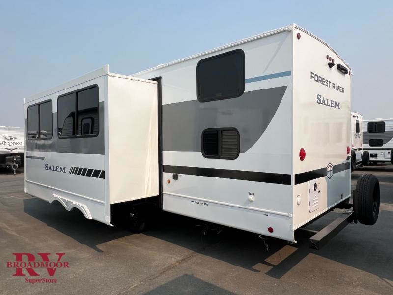 The Salem travel trailers are packed with hassle-free camping amenities! There are a variety of floorplans to choose from between three different regions. The heated and enclosed Accessibelly will help protect against the elements and debris during transport, and the exterior retro/metal redesign is sure to be eye-catching! There are stylish roller shades inside, along with updated backsplash, elegant curtain rods and curtains, plus many more interior comforts! Choose a Salem travel trailer today for quality and value!