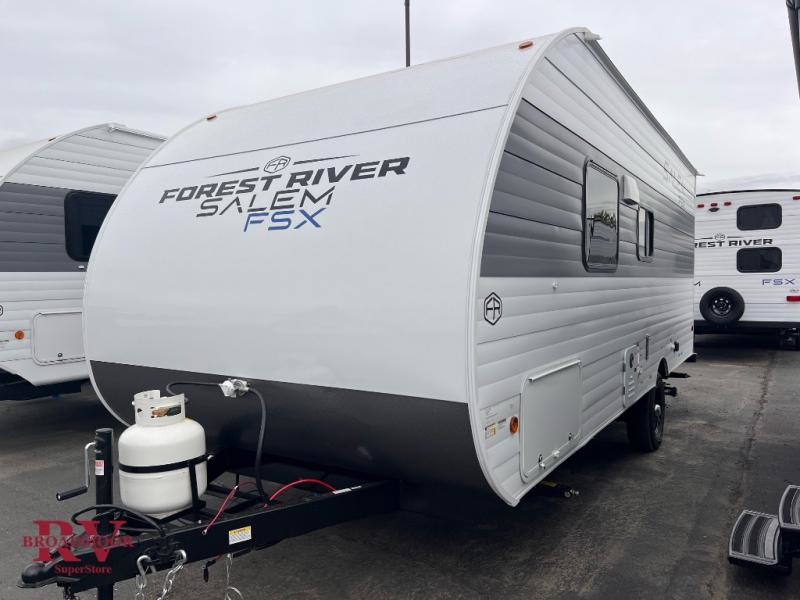 The Forest River Salem FSX travel trailers and toy hauler travel trailers are ultra comfortable and lightweight, perfect for first time or seasoned campers alike! You will love how easy it will be to relax with residential features that will make your space feel just like home, and the durable construction means you can enjoy your RV for years to come. There are a wide variety of floorplans to choose from, including couple's trailers, bunk models, and toy haulers, all with full bath and kitchen amenities and plenty of storage for all your gear!