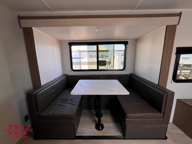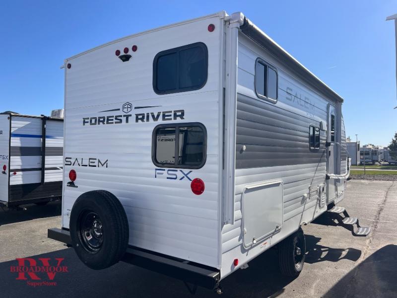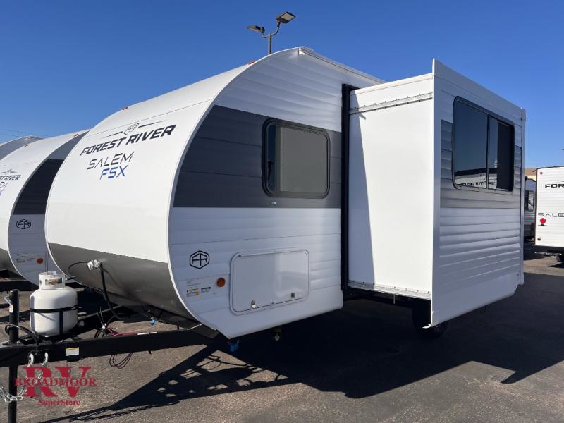 The Forest River Salem FSX travel trailers and toy hauler travel trailers are ultra comfortable and lightweight, perfect for first time or seasoned campers alike! You will love how easy it will be to relax with residential features that will make your space feel just like home, and the durable construction means you can enjoy your RV for years to come. There are a wide variety of floorplans to choose from, including couple's trailers, bunk models, and toy haulers, all with full bath and kitchen amenities and plenty of storage for all your gear!