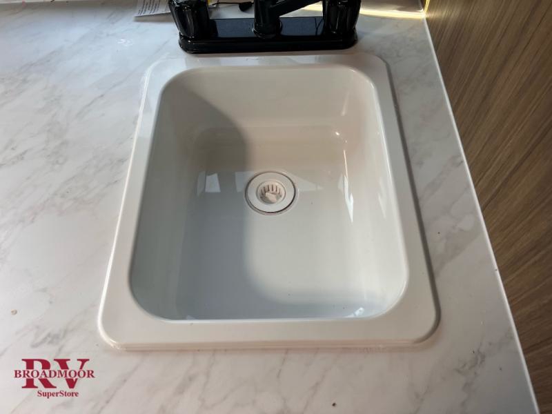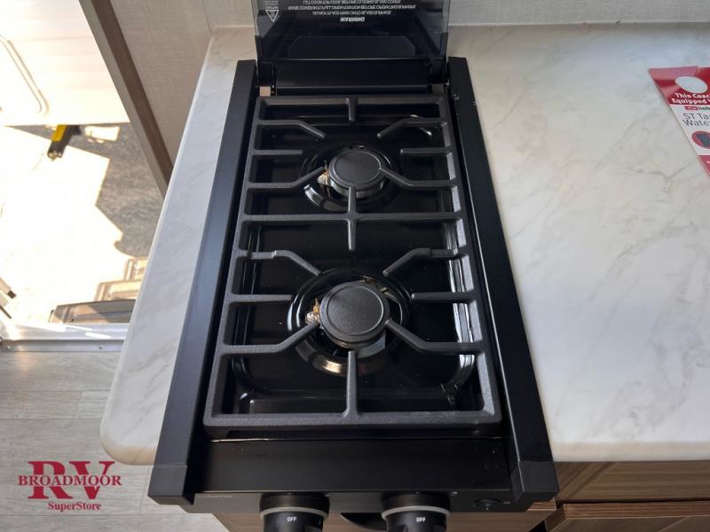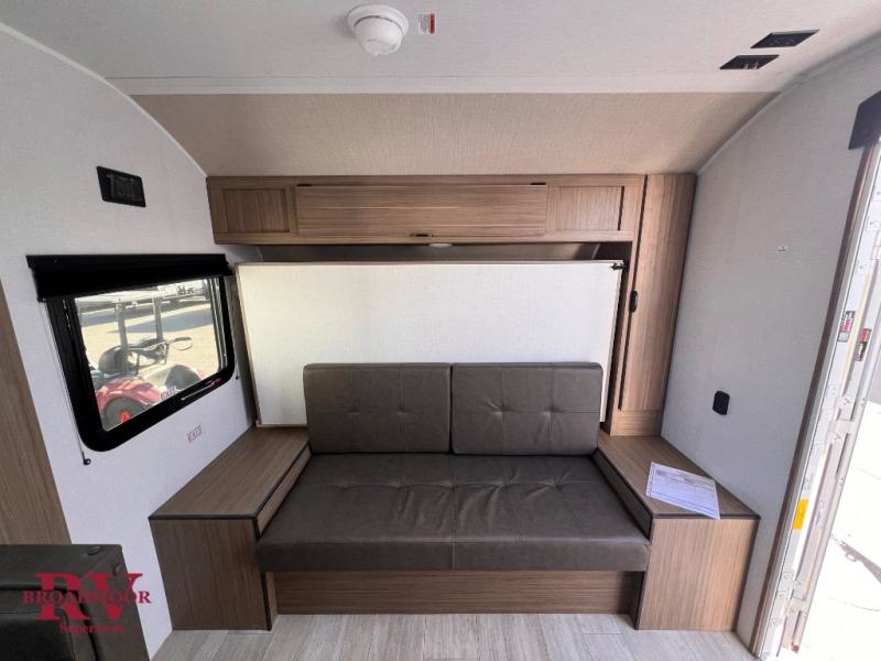 Versatile living is found all throughout this travel trailer! Starting with the front Murphy bed which transforms from sofa seating during the day to a queen bed at night. The kids can sleep on the set of double bed bunks in the rear curbside corner, and they will appreciate the rear corner bathroom being right next to them at night. You can prepare your best home cooked meals either indoors with the two burner cooktop and microwave oven, or breathe in some fresh air while you cook at the outside kitchen. Enjoy your meals at the U-shaped dinette slide and look out at your beautiful scenery through the panoramic window!