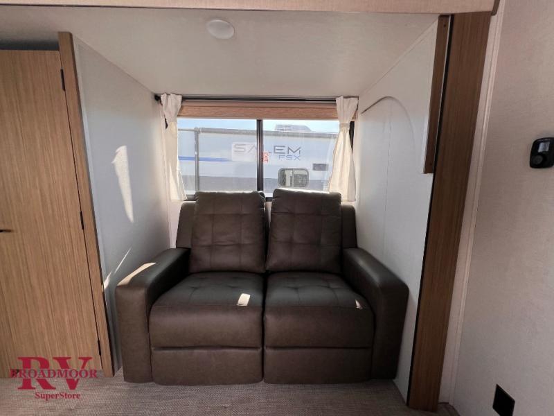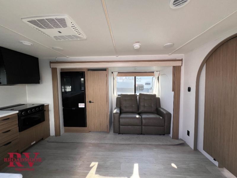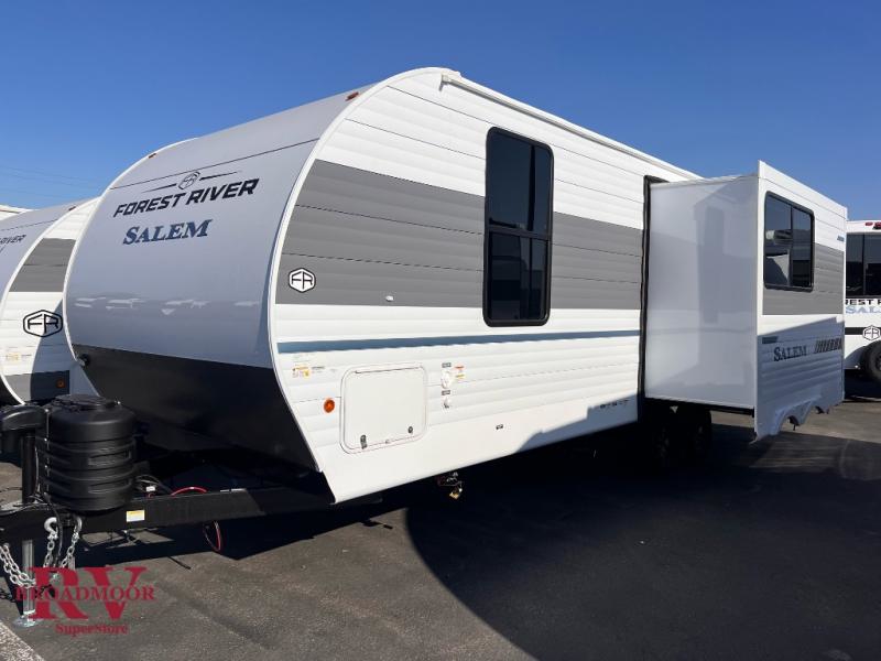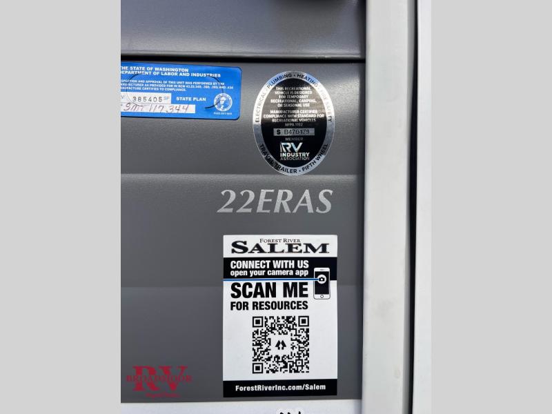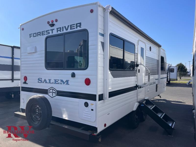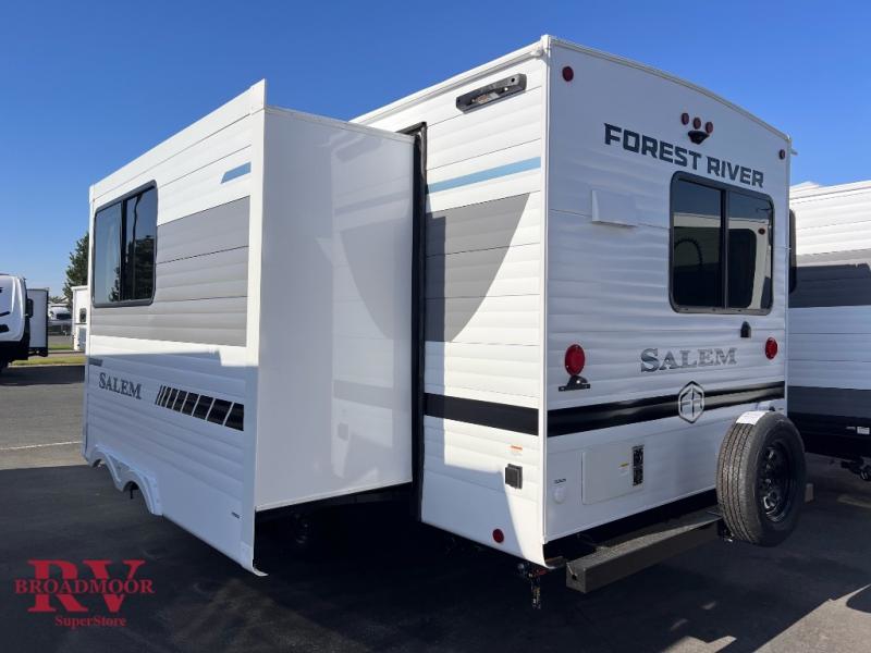 The Salem travel trailers are packed with hassle-free camping amenities and there are a variety of floorplans to choose from. The heated and enclosed Accessibelly will help protect against the elements and debris during transport, and the exterior retro/metal redesign is sure to be eye-catching! There are stylish roller shades inside, along with updated backsplash, elegant curtain rods and curtains, plus many more interior comforts! Choose a Salem travel trailer today for quality and value!