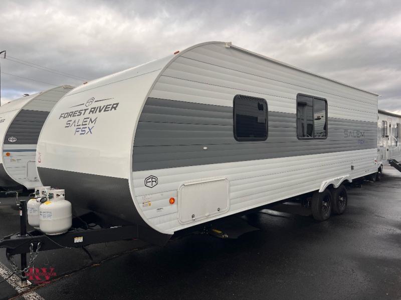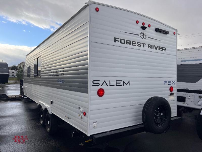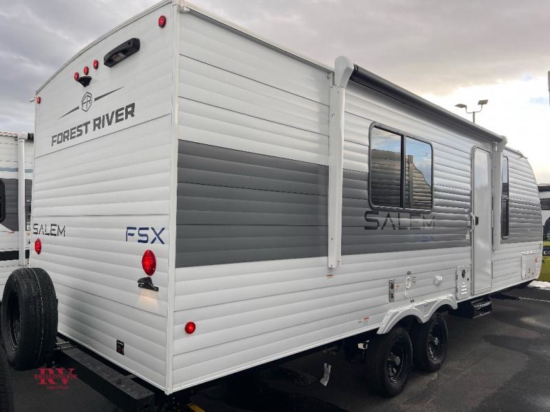 The Forest River Salem FSX travel trailers and toy hauler travel trailers are ultra comfortable and lightweight, perfect for first time or seasoned campers alike! You will love how easy it will be to relax with residential features that will make your space feel just like home, and the durable construction means you can enjoy your RV for years to come. There are a wide variety of floorplans to choose from, including couple's trailers, bunk models, and toy haulers, all with full bath and kitchen amenities and plenty of storage for all your gear!