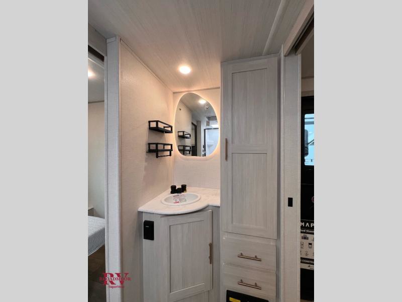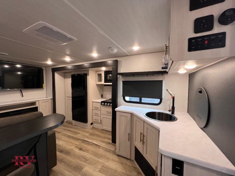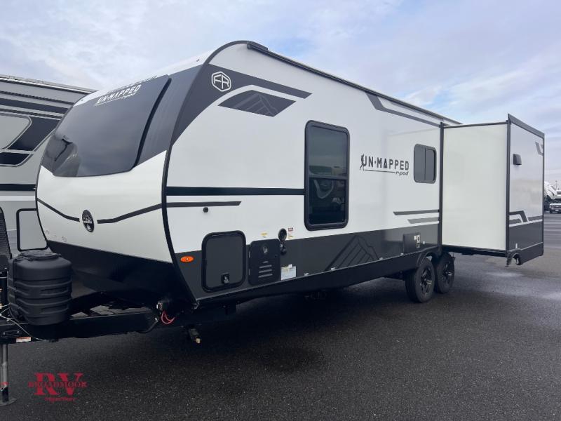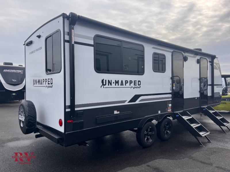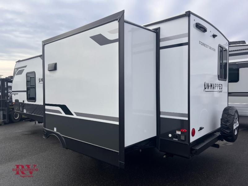 The Forest River Un-Mapped travel trailers deliver an unparalleled travel experience thanks to their incredible features, starting with the aluminum-framed floor with block foam insulation that ensures exceptional structural integrity and thermal efficiency, along with the sealed underbelly with forced heat & radiant foil barrier that provides superior insulation and heat management, and the power tongue jack facilitates easy maneuvering and stabilization of the trailer. Plus, the 30 Amp charge controller with solar inverter prep is ready for integration with solar power systems, catering to eco-conscious travelers seeking off-grid capabilities. Inside, you will find seamless Surf-X kitchen countertops that offer a sleek, durable surface and are easy to maintain for busy travelers. Further, the blackout roller shades will add privacy and light control for restful nights and cozy daytime retreats.