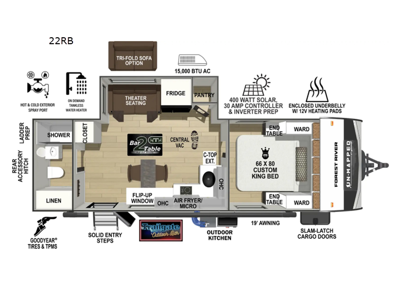 Forest River Un-Mapped travel trailer 22RB highlights: