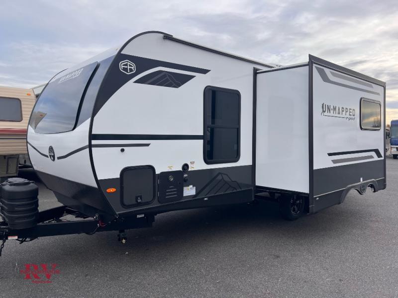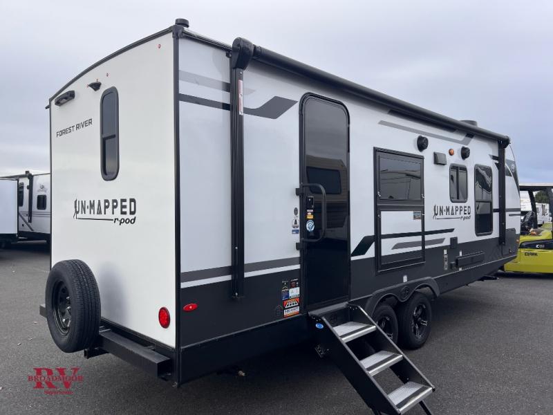 The Forest River Un-Mapped travel trailers deliver an unparalleled travel experience thanks to their incredible features, starting with the aluminum-framed floor with block foam insulation that ensures exceptional structural integrity and thermal efficiency, along with the sealed underbelly with forced heat & radiant foil barrier that provides superior insulation and heat management, and the power tongue jack facilitates easy maneuvering and stabilization of the trailer. Plus, the 30 Amp charge controller with solar inverter prep is ready for integration with solar power systems, catering to eco-conscious travelers seeking off-grid capabilities. Inside, you will find seamless Surf-X kitchen countertops that offer a sleek, durable surface and are easy to maintain for busy travelers. Further, the blackout roller shades will add privacy and light control for restful nights and cozy daytime retreats.