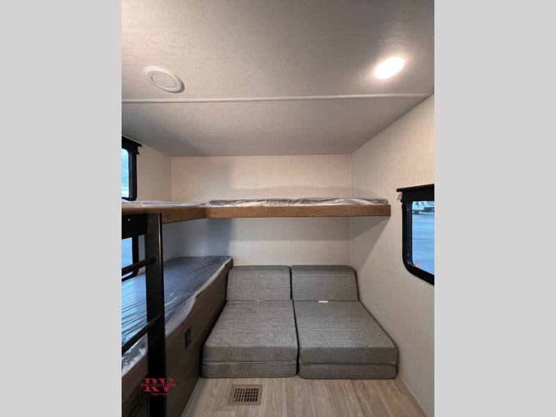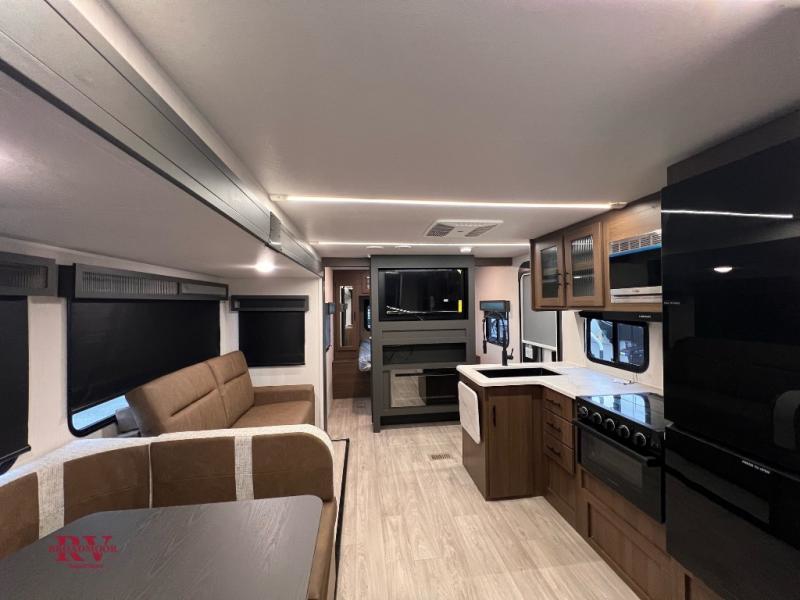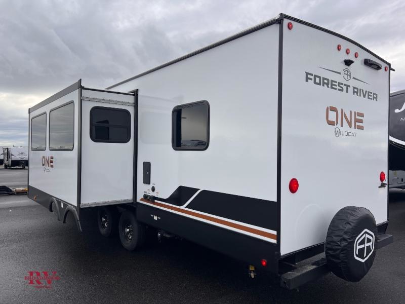With any Wildcat ONE travel trailer by Forest River in tow, you will find fun and adventure wherever you go! Each model is constructed 2" thick Vacuum-Bonded sidewalls, a Maxx-strength aluminum-framed laminated floor, and double R-7 fiberglass insulation for added protection. These features are included with the Maxx Insulation Package, which also includes slam-latch baggage doors, a fully enclosed underbelly, and more. The Dynamic Technology Package features a 200W expandable roof mounted solar panel with a 30 amp charge controller for off-grid capabilities, backup camera prep, an exterior TV connection, and a frame-mounted receiver hitch to name a few conveniences. A front windshield is found within the Peak Package, along with a power tongue jack, solid surface kitchen countertops, friction hinge entry doors, and an exterior ladder prep.