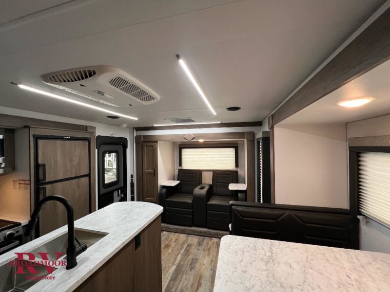 You won't believe the amount of space and comfort you'll find in this truck camper. The triple slides provide more space to relax on the sofa slide out, cook at the counter peninsula, and dine a the booth dinette! A dry bath with a separate fiberglass shower, large medicine cabinet with a mirrored door, and Dometic toilet will let you freshen up each day. You'll feel right at home in the front bedroom that includes a queen bed, LED bedroom reading lights, and storage space for your things.