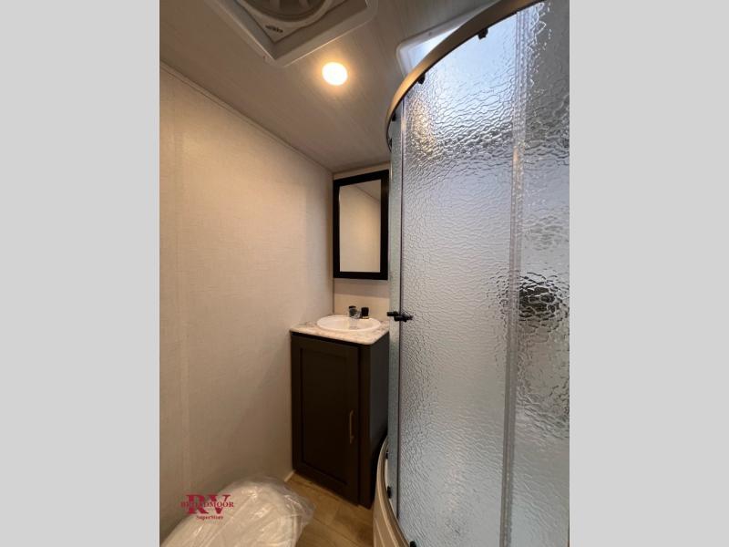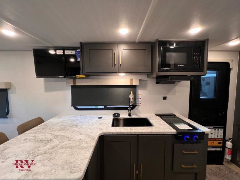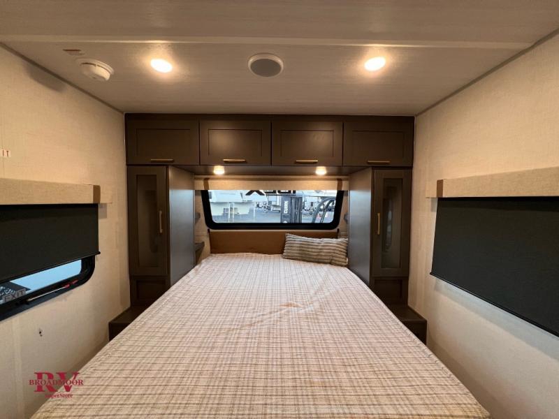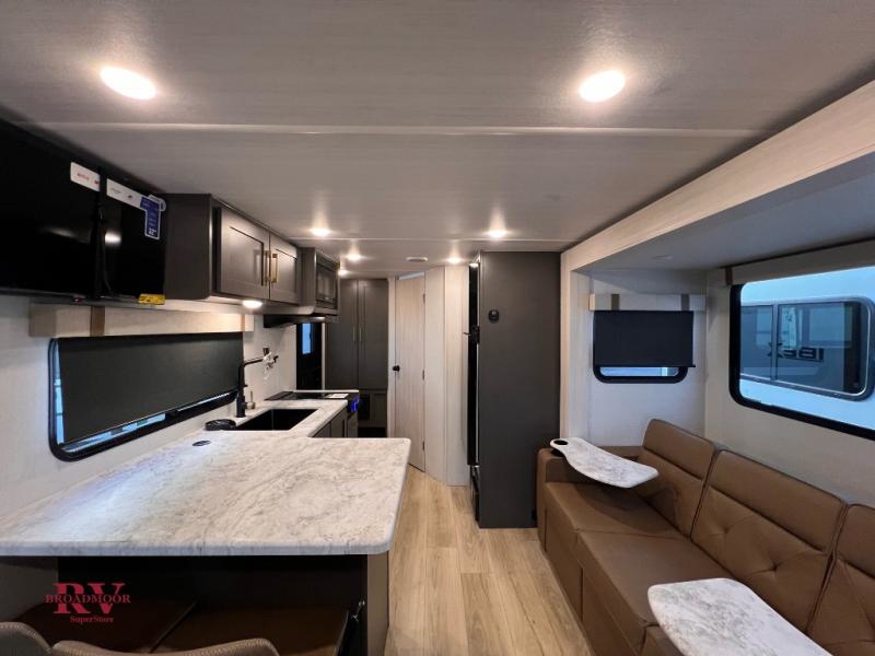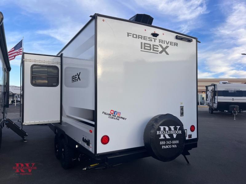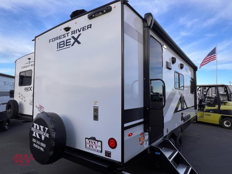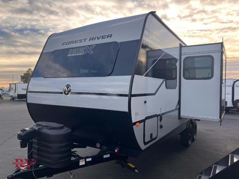 The Forest River IBEX travel trailers are extended season ready, and adventure approved! They are built with a fully walkable PVC roof, a welded aluminum structure, and laminated walls and slide outs with Azdel composite panels. There are also all-terrain tires with TPMS, a hot and cold exterior spray port, and large holding tanks for added convenience when you're set up off-grid. The USB-C ports inside and out will help you keep your electronics charged, and the premium window treatments will make your trailer feel more like home. The optional Black Canyon Beast Mode Package is available with an independent suspension, a 400-watt solar package, a fresh water filter, and a Maxxair roof vent cover.