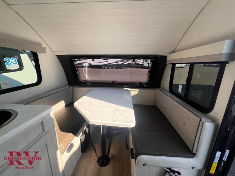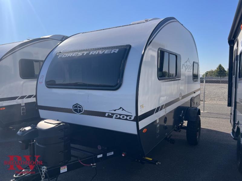 With any R-Pod travel trailer by Forest River, you will enjoy affordable luxury at the lowest tow weight in its class! There is a sealed underbelly with forced heat, a curved dual-pane acrylic front window with a bug screen and night shade, plus a large roof mounted solar panel for off-grid capabilities. The 15K A/C unit will keep you comfortable during the summer camping months, and the tankless water heater will provide endless hot showers after hiking, biking, swimming and more! Each model also includes a black glass friction hinge entrance door, roof ladder prep, exterior motion lighting, plus a hot and cold exterior spray port to wash off sand from the beach. Inside, you'll enjoy seamless Surf-X kitchen countertops, blackout roller shades, and a central vacuum system for hassle-free cleaning!