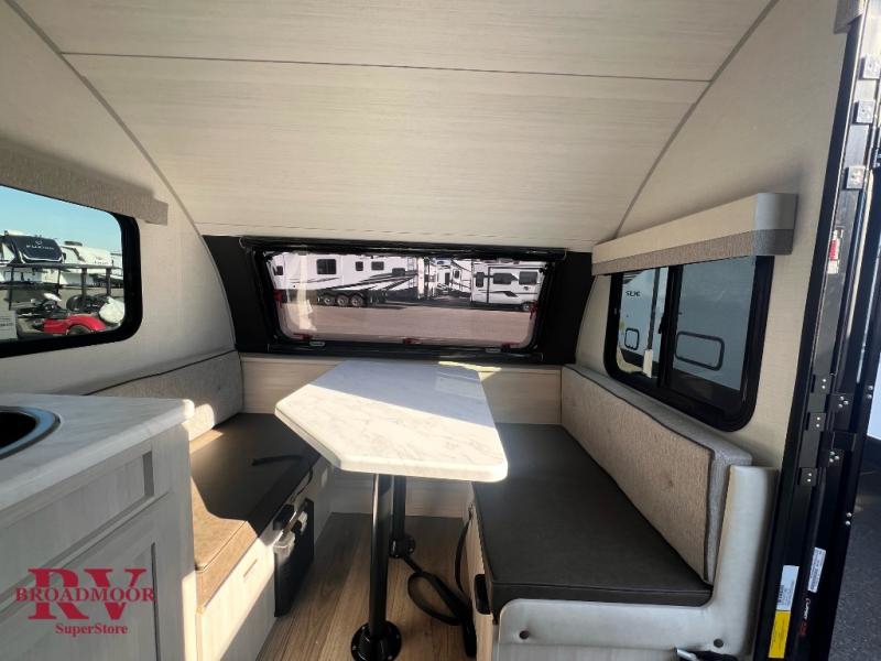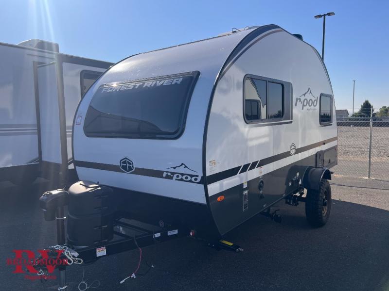 With any R-Pod travel trailer by Forest River, you will enjoy affordable luxury at the lowest tow weight in its class! There is a sealed underbelly with forced heat, a curved dual-pane acrylic front window with a bug screen and night shade, plus a large roof mounted solar panel for off-grid capabilities. The 15K A/C unit will keep you comfortable during the summer camping months, and the tankless water heater will provide endless hot showers after hiking, biking, swimming and more! Each model also includes a black glass friction hinge entrance door, roof ladder prep, exterior motion lighting, plus a hot and cold exterior spray port to wash off sand from the beach. Inside, you'll enjoy seamless Surf-X kitchen countertops, blackout roller shades, and a central vacuum system for hassle-free cleaning!