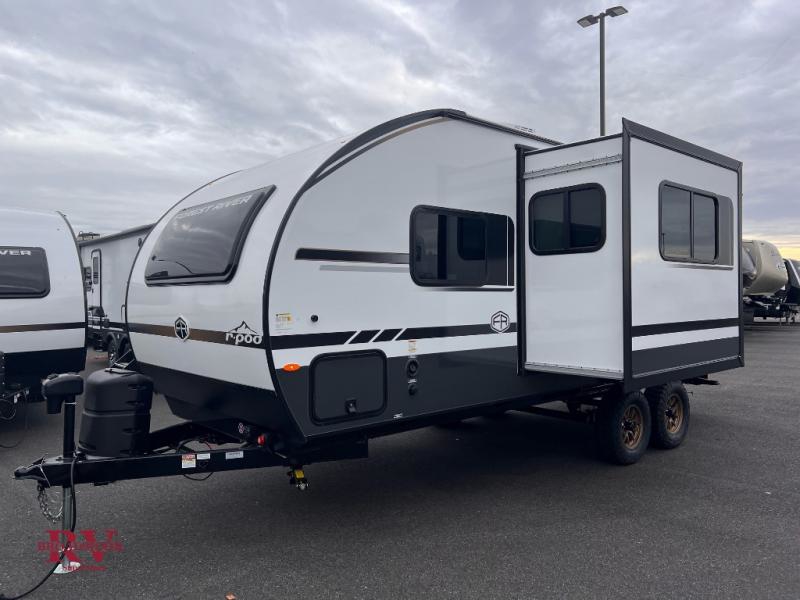 With any R-Pod travel trailer by Forest River, you will enjoy affordable luxury at the lowest tow weight in its class! There is a sealed underbelly with forced heat, a curved dual-pane acrylic front window with a bug screen and night shade, plus a large roof mounted solar panel for off-grid capabilities. The 15K A/C unit will keep you comfortable during the summer camping months, and the tankless water heater will provide endless hot showers after hiking, biking, swimming and more! Each model also includes a black glass friction hinge entrance door, roof ladder prep, exterior motion lighting, plus a hot and cold exterior spray port to wash off sand from the beach. Inside, you'll enjoy seamless Surf-X kitchen countertops, blackout roller shades, and a central vacuum system for hassle-free cleaning!