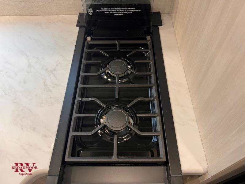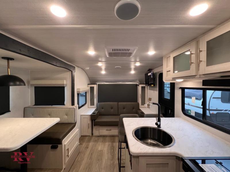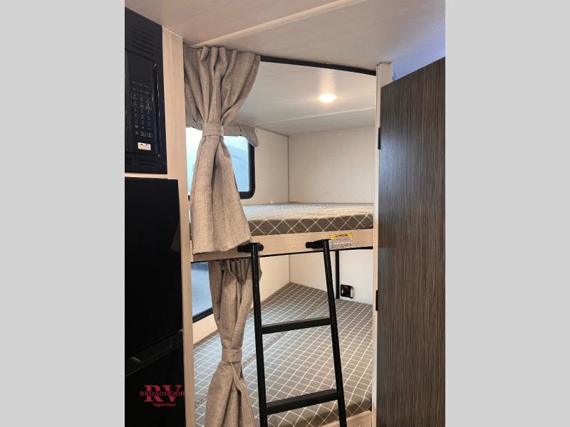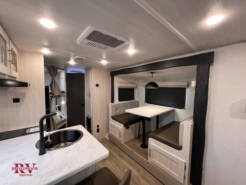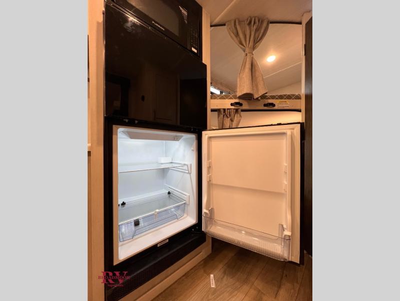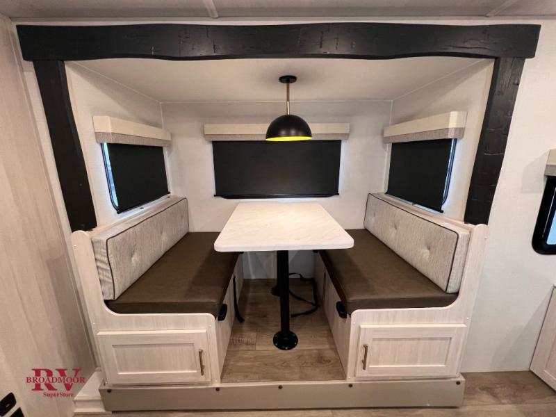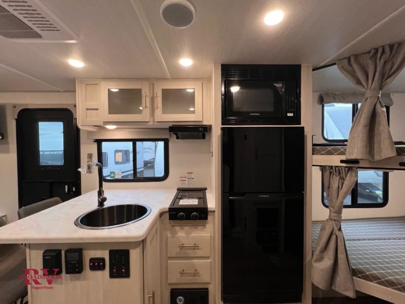 This travel trailer offers a great flexible floorplan. The living area sofa hides a Murphy bed which can be folded down at night, giving you full use of the room during the day. At the rear is a pair of double-size bunks which provide a spacious private sleeping area for children or guests. The booth dinette can also be used for an additional bed as needed. An efficient kitchen includes a bar top with high chairs plus a convection microwave and cooktop to cook meals each day. This model also includes the Hood River Edition that comes with Mud Legend all terrain tires with TPMS, advanced ground clearance, a MaxxAir vent cover, and 12V tank heaters!