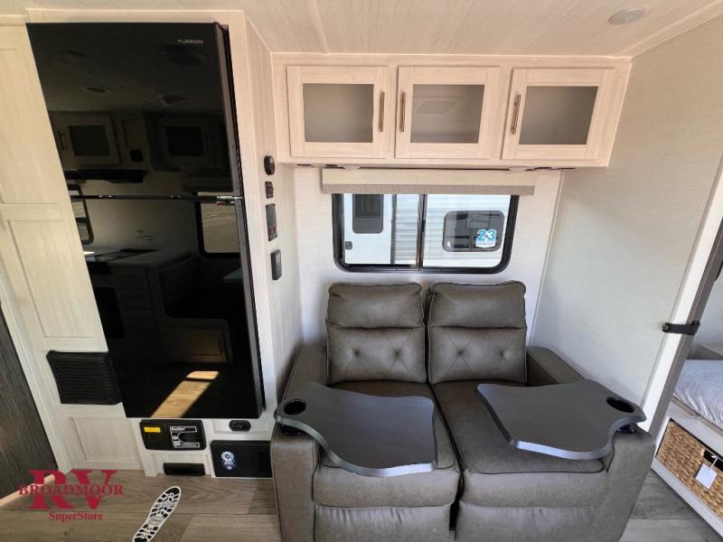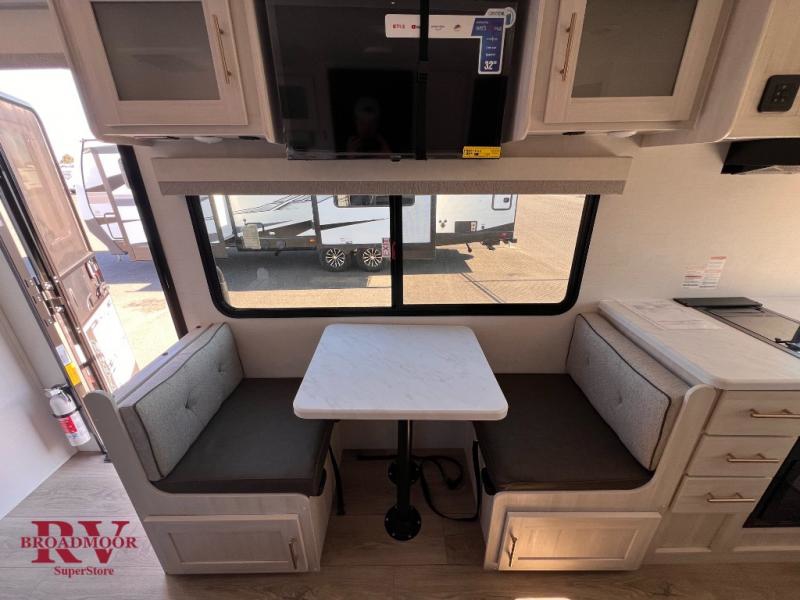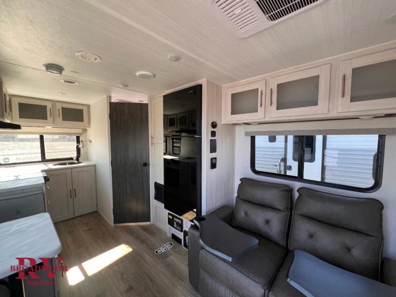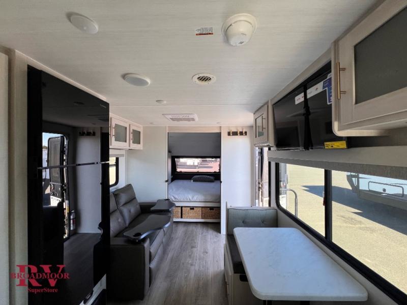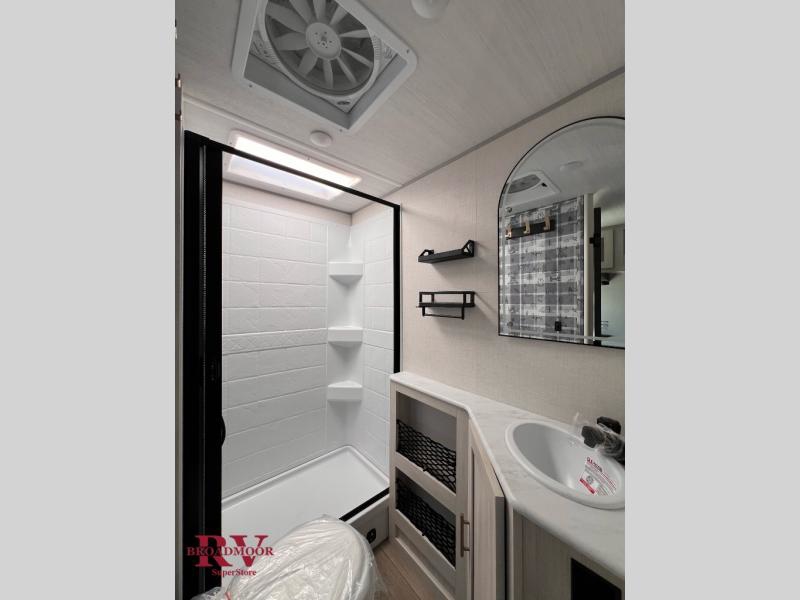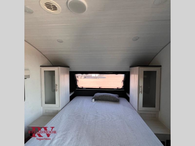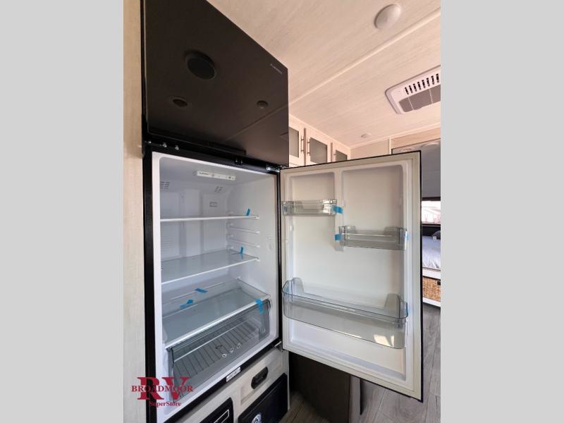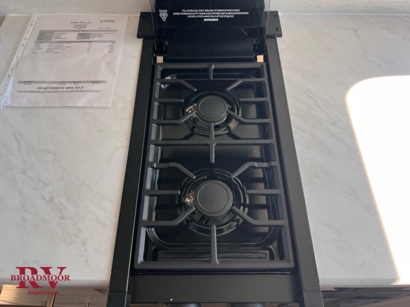 A private bedroom with a walk-around queen bed, a full bath, and sleeping space for guests are a few of the features that you are sure to want in your next RV! You can rest comfortably each night, plus all your clothing can be stored in the dual wardrobes to keep everything tidy. The chef of your group can make meals on the two burner cooktop or in the convection microwave, and there is a 12V black glass refrigerator for perishables. You can relax on the theater seat each evening, or choose the optional tri-fold sofa if you're needing more sleeping space.