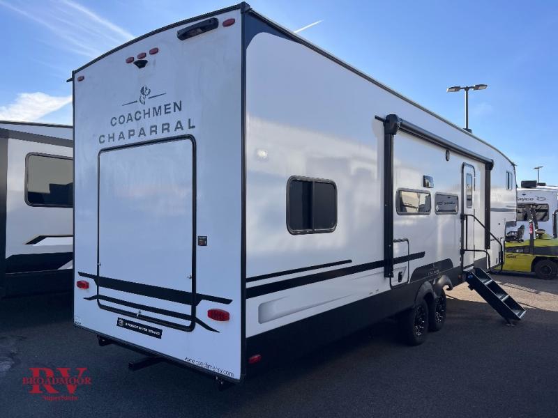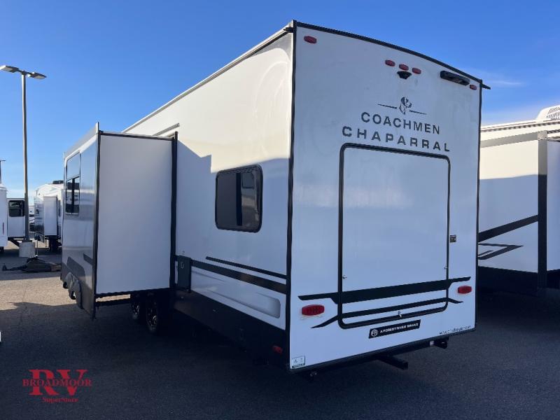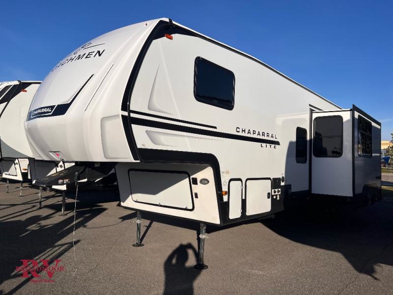Comfort, convenience, and an easy haul is what you will find with each one of these Coachmen RV Chaparral Lite fifth wheels! Their Tri-Tex powder coated frame technology is up to 5X more weather resistant, and the dual-sided Azdel composite sidewall panels are ultra durable. The Equa-Flex suspension provides hassle-free towing, and you might want to add the exterior back-up and sideview camera prep for easy parking. You will feel right at home inside with slow rise blackout roller night shades, an upgraded Carbon and Walnut entertainment center, a modern high-rise kitchen faucet, and many more comforts! The exterior is just as inviting with its electric awning with LED lights, MORryde StepAbove entry steps, and pass-through storage for all your gear!