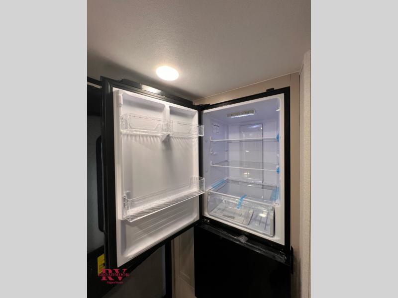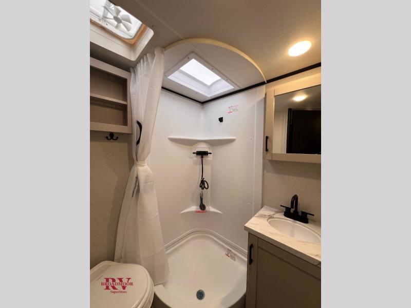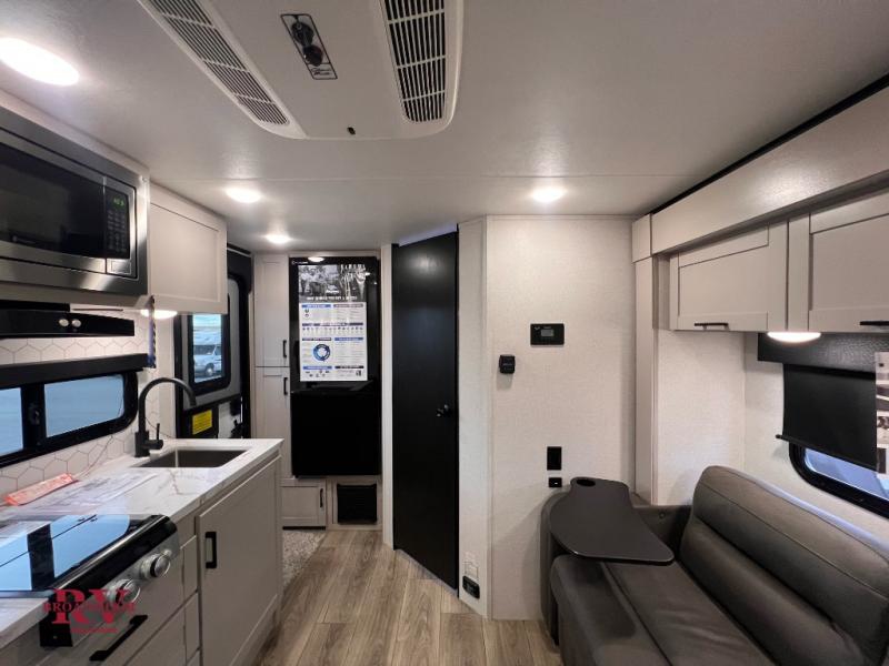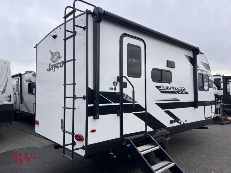With any Jay Feather Air travel trailer by Jayco, you will enjoy lightweight towing and a variety of features to make each camping trip count! The Climate Shield insulation system helps extend your camping season by keeping you comfortable even in extreme weather conditions, and the Rock Solid stabilizer system means set up will be a breeze. An 18" rear roof ladder lets you easily clean the top of your Magnum Truss roof, and the 2" receiver will be perfect for your bike rack. The Overland 1 Solar Package with a 200W solar panel and 30-amp controller will provide off-grid capabilities, or you can can choose the optional Overland 2 Solar Package with two panels instead! Each Jay Feather Air includes residential-style seamless countertops inside, along with stainless steel sinks, decorative backsplash, and decorative roller shades with a reflective barrier to help keep the sun's rays out.