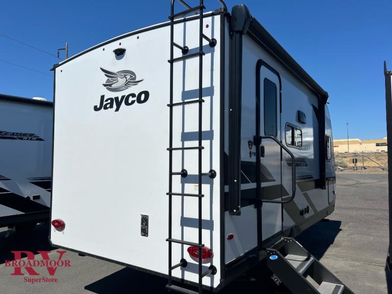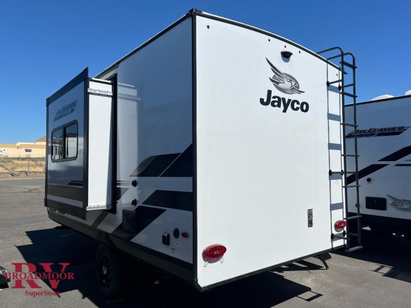 With any Jay Feather Air travel trailer by Jayco, you will enjoy lightweight towing and a variety of features to make each camping trip count! The Climate Shield insulation system helps extend your camping season by keeping you comfortable even in extreme weather conditions, and the Rock Solid stabilizer system means set up will be a breeze. An 18" rear roof ladder lets you easily clean the top of your Magnum Truss roof, and the 2" receiver will be perfect for your bike rack. The Overland 1 Solar Package with a 200W solar panel and 30-amp controller will provide off-grid capabilities, or you can can choose the optional Overland 2 Solar Package with two panels instead! Each Jay Feather Air includes residential-style seamless countertops inside, along with stainless steel sinks, decorative backsplash, and decorative roller shades with a reflective barrier to help keep the sun's rays out.