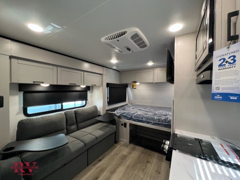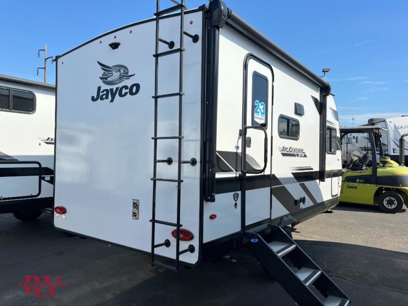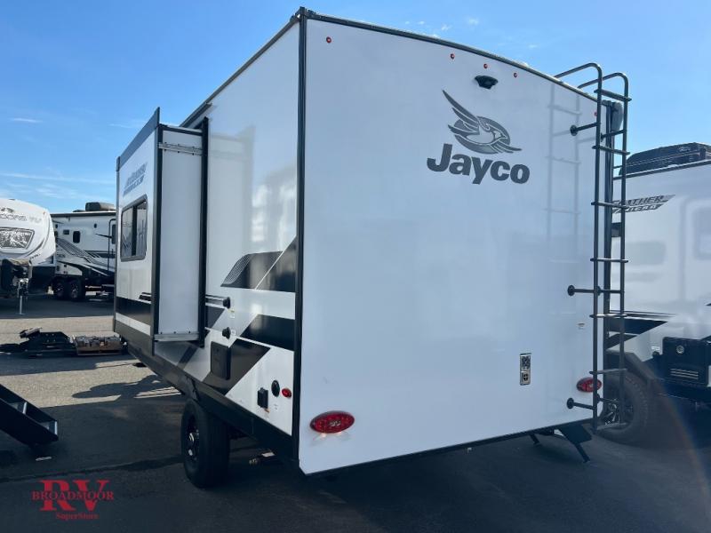 With any Jay Feather Air travel trailer by Jayco, you will enjoy lightweight towing and a variety of features to make each camping trip count! The Climate Shield insulation system helps extend your camping season by keeping you comfortable even in extreme weather conditions, and the Rock Solid stabilizer system means set up will be a breeze. An 18" rear roof ladder lets you easily clean the top of your Magnum Truss roof, and the 2" receiver will be perfect for your bike rack. The Overland 1 Solar Package with a 200W solar panel and 30-amp controller will provide off-grid capabilities, or you can can choose the optional Overland 2 Solar Package with two panels instead! Each Jay Feather Air includes residential-style seamless countertops inside, along with stainless steel sinks, decorative backsplash, and decorative roller shades with a reflective barrier to help keep the sun's rays out.