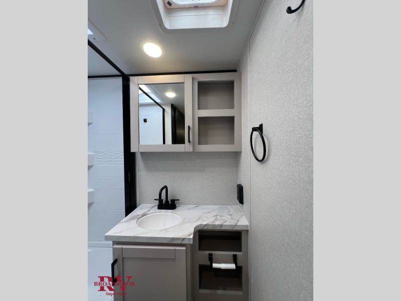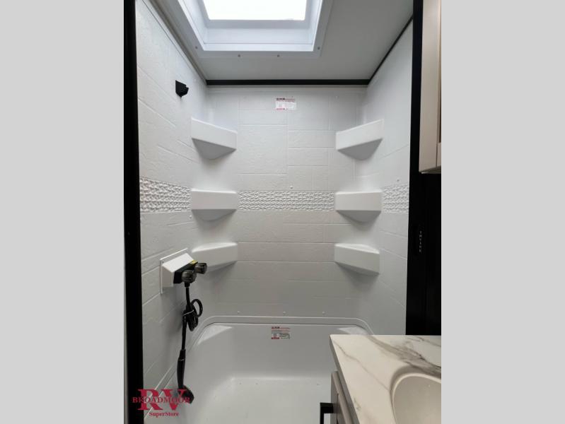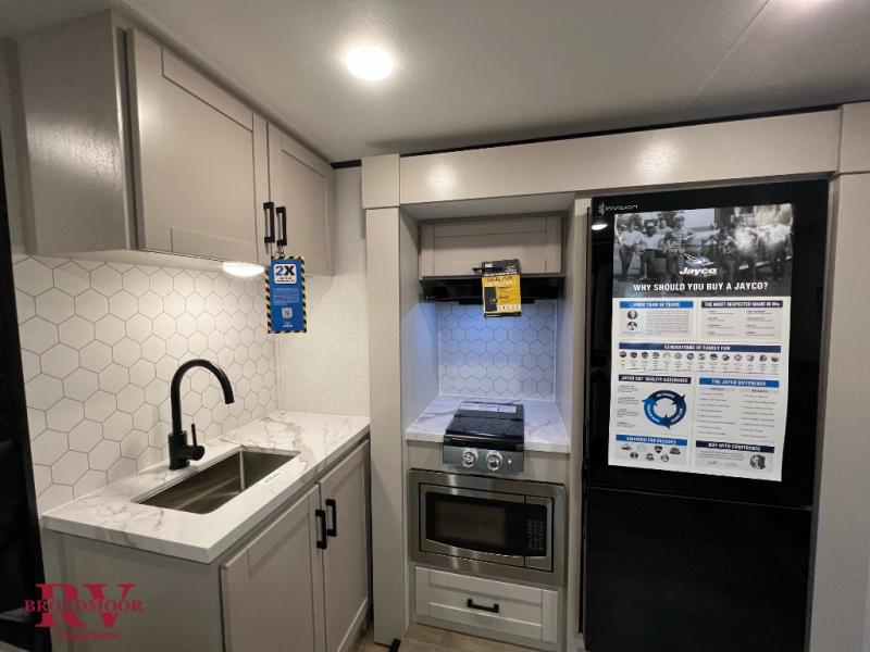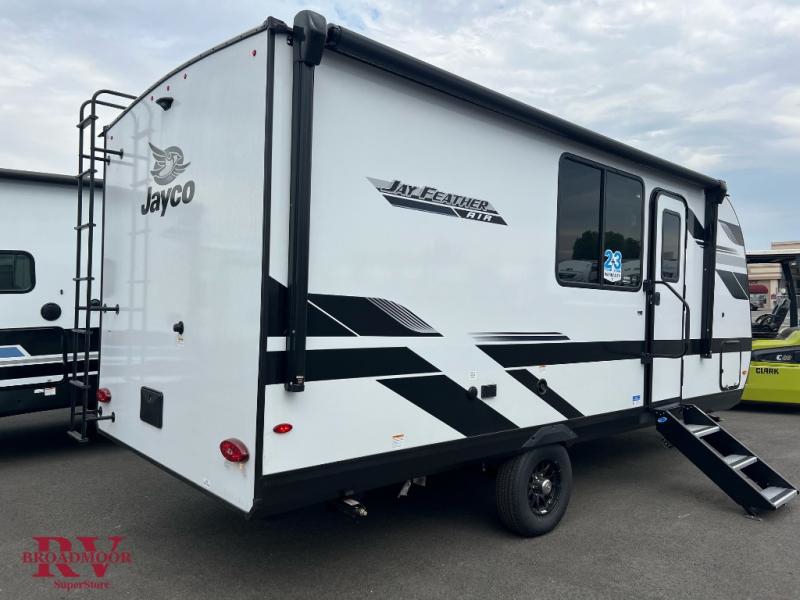 With any Jay Feather Air travel trailer by Jayco, you will enjoy lightweight towing and a variety of features to make each camping trip count! The Climate Shield insulation system helps extend your camping season by keeping you comfortable even in extreme weather conditions, and the Rock Solid stabilizer system means set up will be a breeze. An 18" rear roof ladder lets you easily clean the top of your Magnum Truss roof, and the 2" receiver will be perfect for your bike rack. The Overland 1 Solar Package with a 200W solar panel and 30-amp controller will provide off-grid capabilities, or you can can choose the optional Overland 2 Solar Package with two panels instead! Each Jay Feather Air includes residential-style seamless countertops inside, along with stainless steel sinks, decorative backsplash, and decorative roller shades with a reflective barrier to help keep the sun's rays out.
