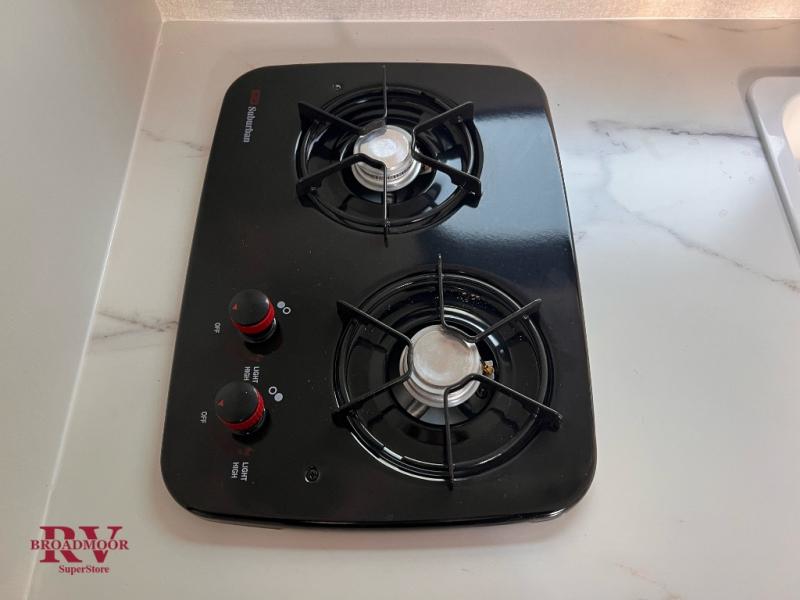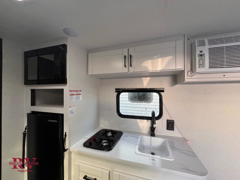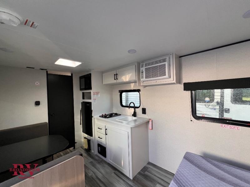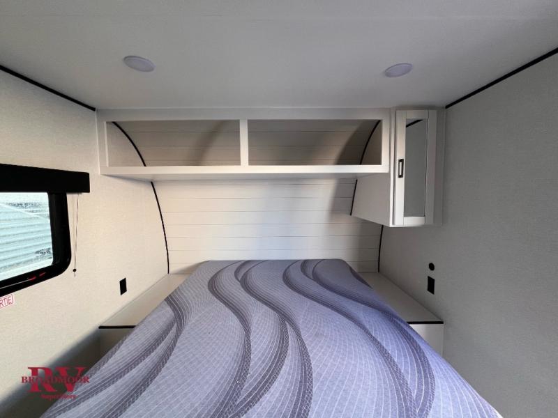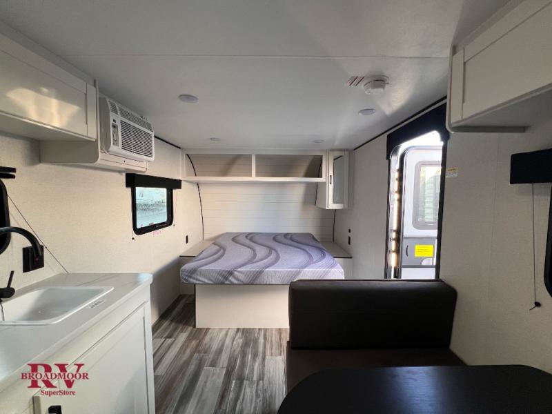 This travel trailer includes everything you need for fun trips at the lake. When you arrive at the campground, you can unload the exterior storage, then put out the 10' power awning. The booth dinette inside will provide a place to dine together, and the full rear bath with a shower will make it easier than ever to clean up after a day of hiking. A front RV queen bed will provide a great night's rest, and the overhead shelf will be perfect for books or personal belongings.