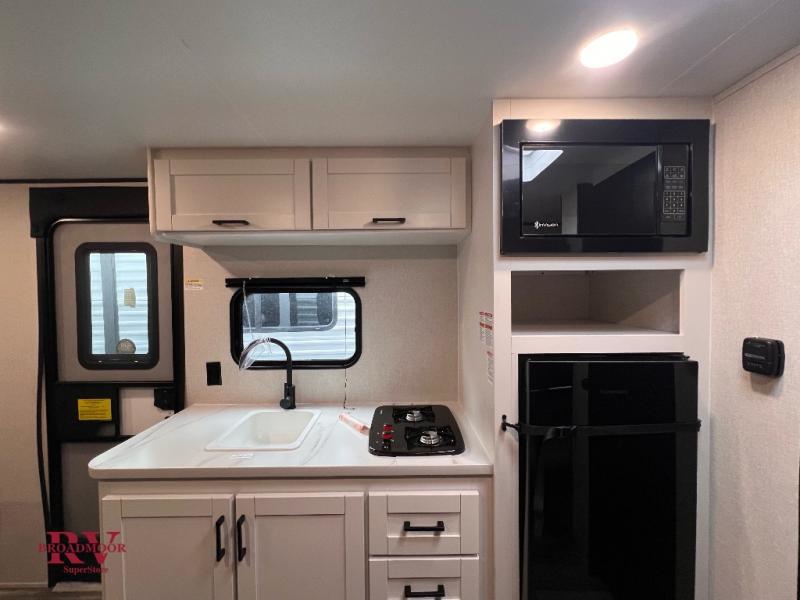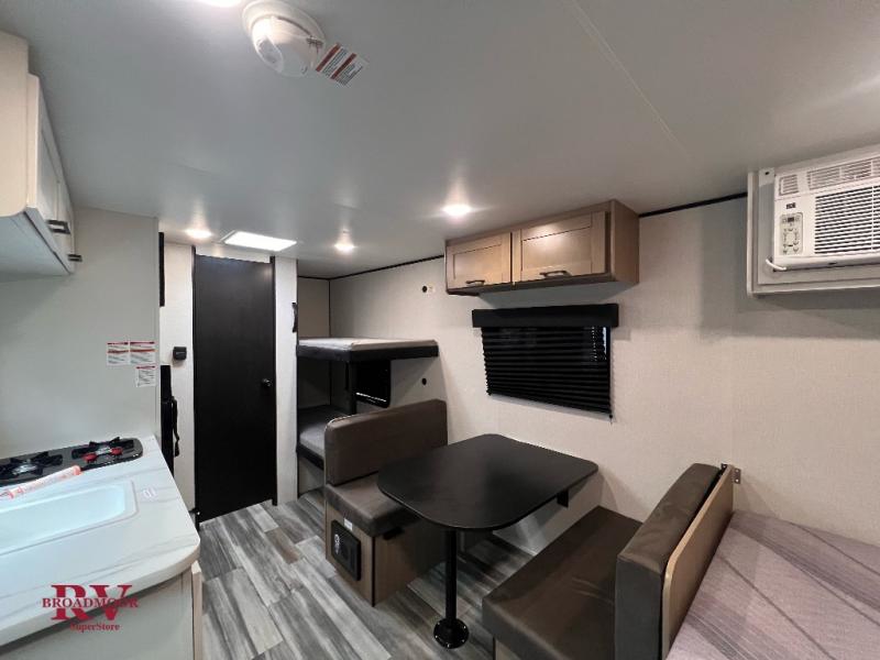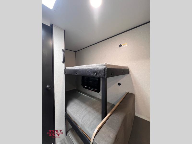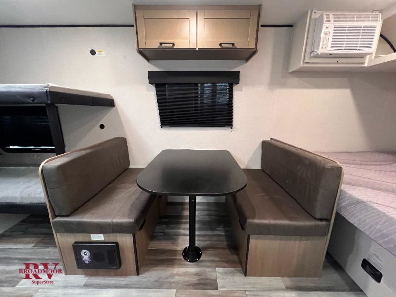 Your crew of five will love camping in this single-axle travel trailer! There are bunk beds in the rear corner and a full bath in the other rear corner for easy nighttime use. You will have the front queen bed to yourselves, along with an overhead shelf and a nightstand/wardrobe for your clothes. The booth dinette provides a place to dine, play games, and even let an extra guest stay over. The Customer Value Package on this Sport Edition model includes a 19K BTU furnace, stabilizer jacks, a power awning, an entry door with a window and shade prep, and many more stand-out features!