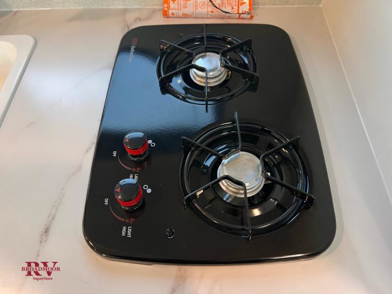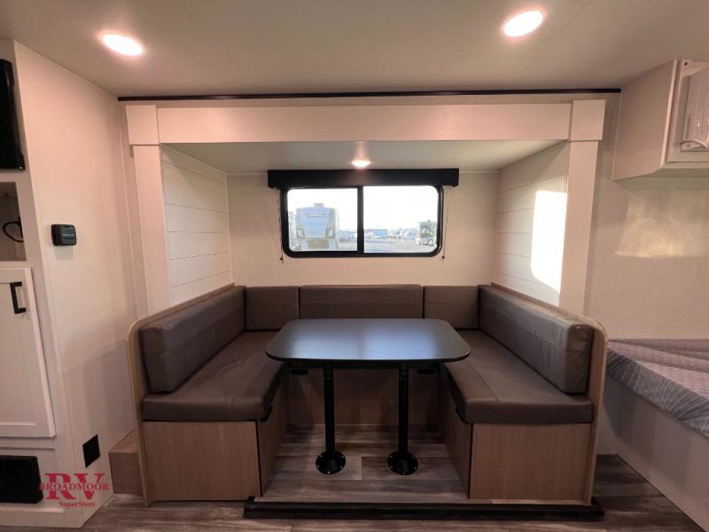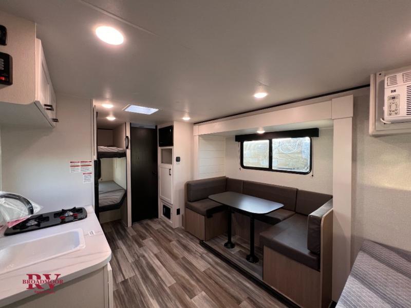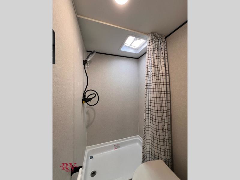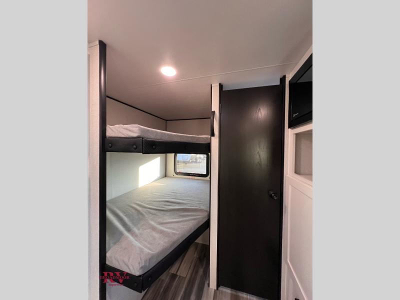Your crew of eight will love camping in this travel trailer! There are double-size bunk beds in the rear corner and a private bath in the other rear corner for easy nighttime use. You will have the front queen bed to yourselves, along with an overhead shelf and a nightstand for your things. And the U-shaped dinette provides a place to dine, play games, and even let more guests sleep over. The Customer Value Package on this Sport Edition model includes a 19K BTU furnace, stabilizer jacks, a power awning, an entry door with a window and shade prep, and many more stand-out features!