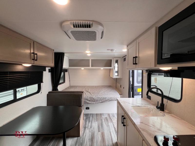 The Jayco Jay Flight SLX travel trailer is quite easy to own because it is lightweight for an easier towing experience. Built on a fully integrated A-frame with galvanized-steel, impact-resistant wheel wells, the Jay Flight SLX has quality at its very foundation. That quality continues on to the electric self-adjusting brakes, easy-lube hubs, Magnum Truss roof system, and LP quick connect. Some of what the mandatory Customer Value Package includes is backup camera prep, Keyed-Alike entry and baggage doors, and an on-demand tankless water heater