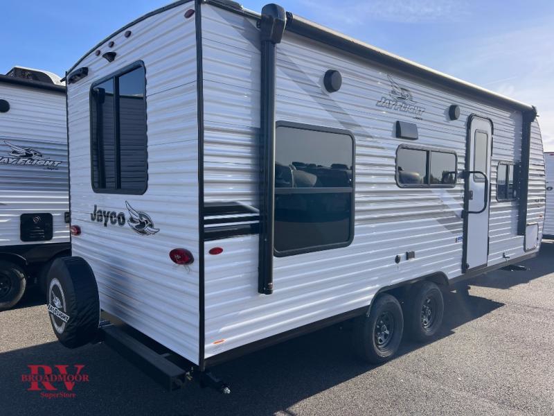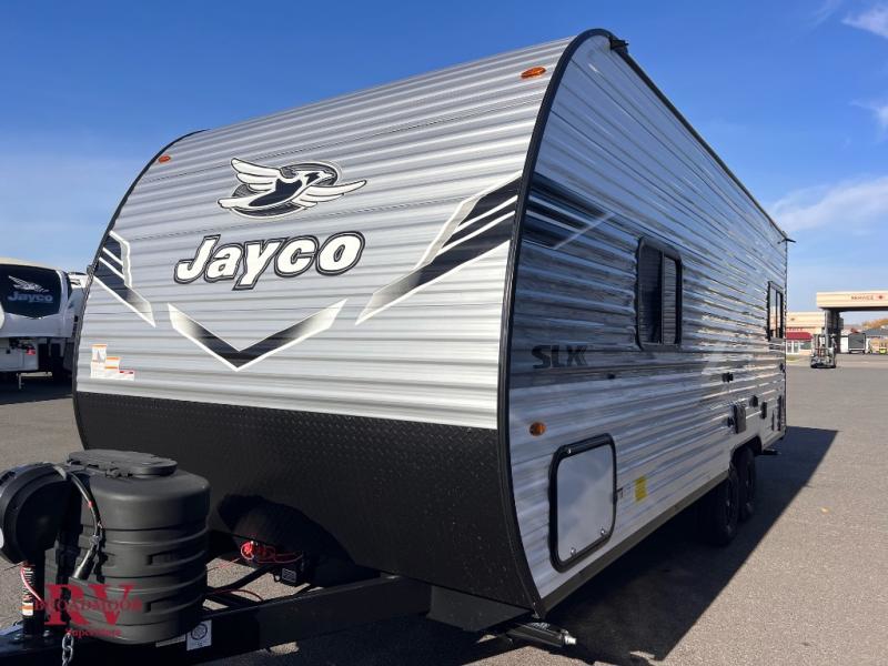 The Jayco Jay Flight SLX travel trailer is quite easy to own because it is lightweight for an easier towing experience. Built on a fully integrated A-frame with galvanized-steel, impact-resistant wheel wells, the Jay Flight SLX has quality at its very foundation. That quality continues on to the electric self-adjusting brakes, easy-lube hubs, Magnum Truss roof system, and LP quick connect. Some of what the mandatory Customer Value Package includes is backup camera prep, Keyed-Alike entry and baggage doors, and an on-demand tankless water heater