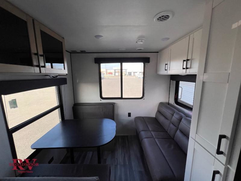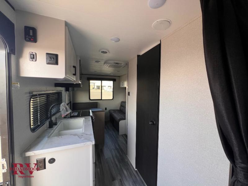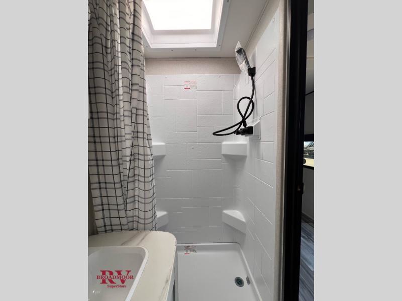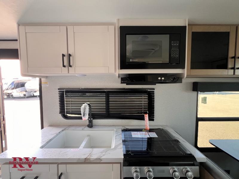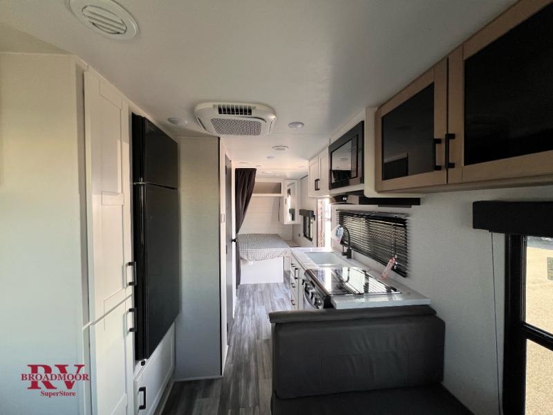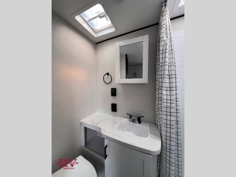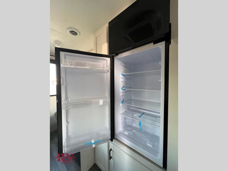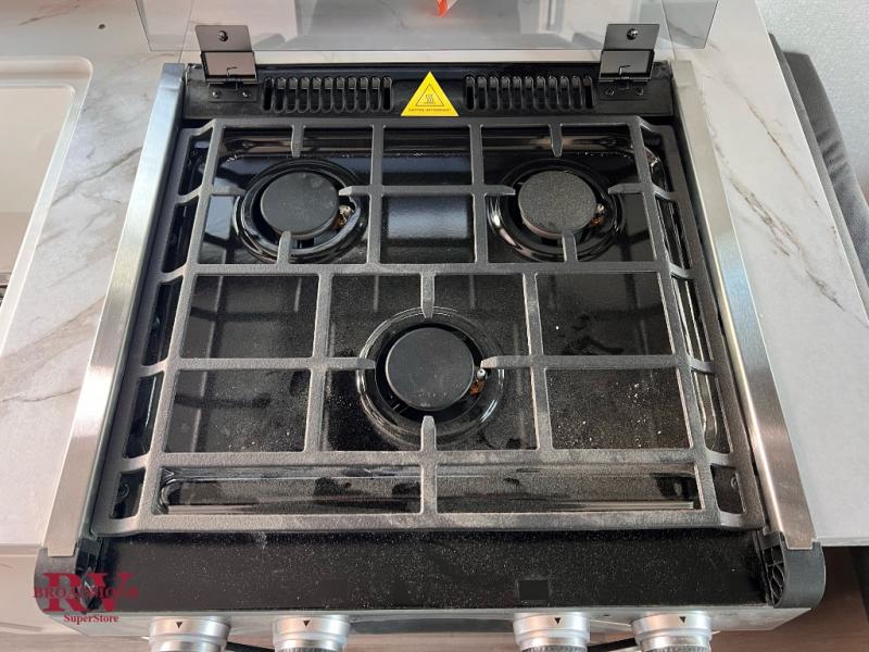 Camping in the woods is just what the doctor ordered and this trailer will provide all the interior comforts you need! There is a three burner cooktop and a microwave oven to prepare meals each day, plus an 8 cu. ft. 12V refrigerator for cold items. After your meal is made, you can dine at the booth dinette or relax on the jack-knife sofa, and these areas can become sleeping space for two to three guests at night. The full bath with a shower means you won't have to use the camp's facilities and the 16' power awning will provide protection from the sun as you visit with other campers!