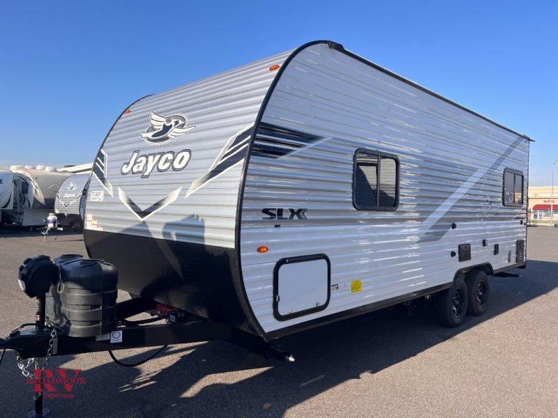 The Jayco Jay Flight SLX travel trailer is quite easy to own because it is lightweight for an easier towing experience. Built on a fully integrated A-frame with galvanized-steel, impact-resistant wheel wells, the Jay Flight SLX has quality at its very foundation. That quality continues on to the electric self-adjusting brakes, easy-lube hubs, Magnum Truss roof system, and LP quick connect. Some of what the mandatory Customer Value Package includes is backup camera prep, Keyed-Alike entry and baggage doors, and an on-demand tankless water heater