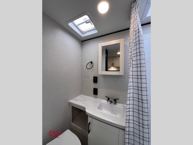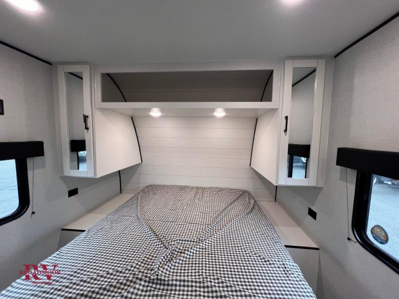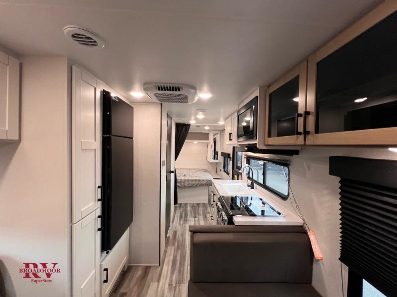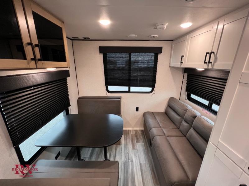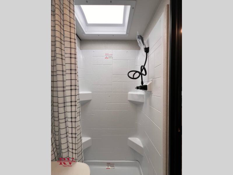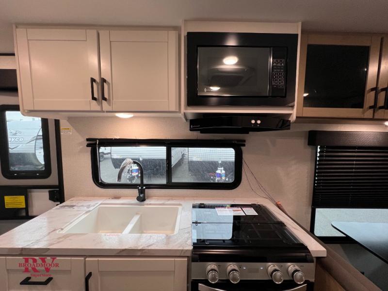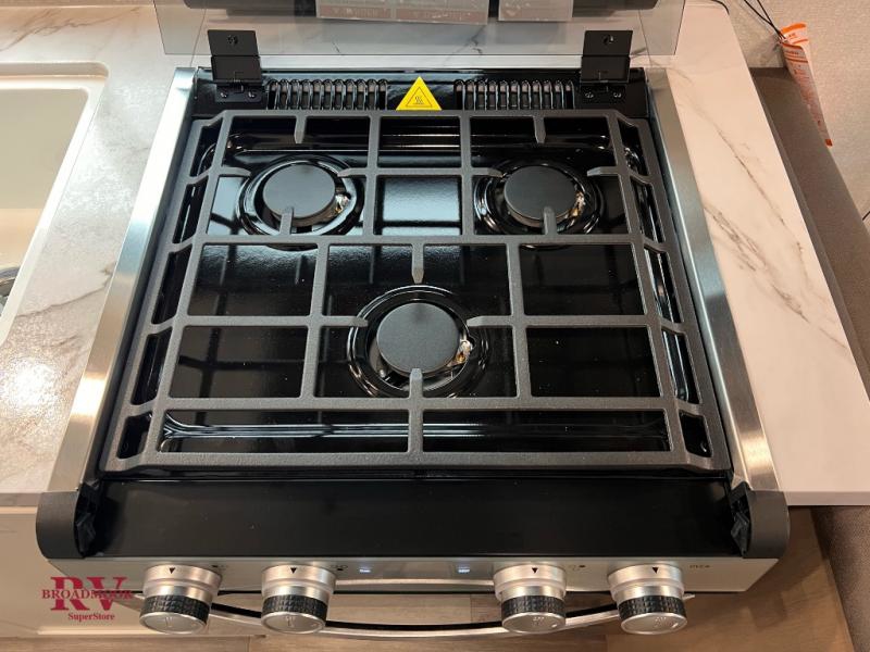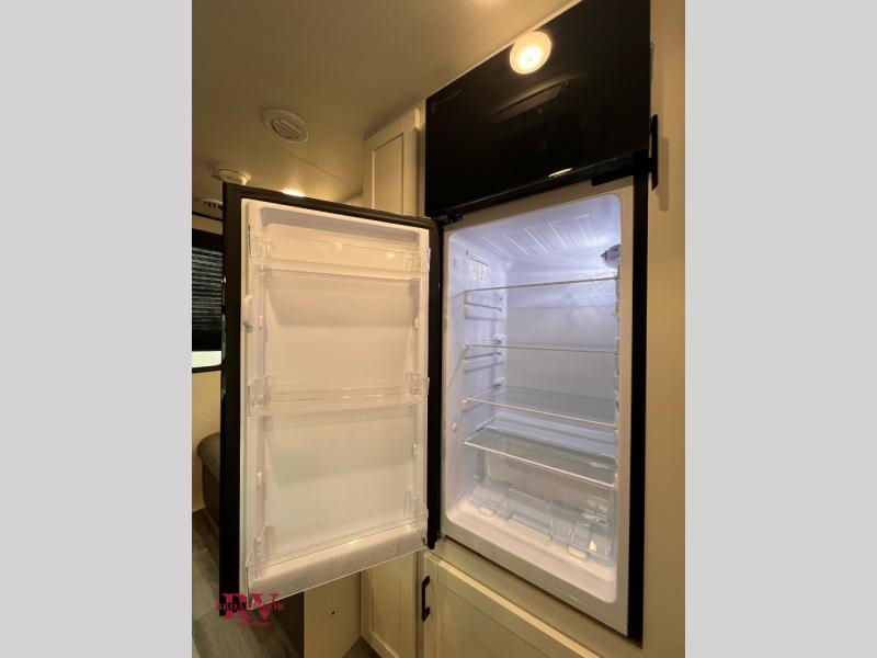 Camping in the woods is just what the doctor ordered and this trailer will provide all the interior comforts you need! There is a three burner cooktop and a microwave oven to prepare meals each day, plus an 8 cu. ft. 12V refrigerator for cold items. After your meal is made, you can dine at the booth dinette or relax on the jack-knife sofa, and these areas can become sleeping space for two to three guests at night. The full bath with a shower means you won't have to use the camp's facilities and the 16' power awning will provide protection from the sun as you visit with other campers!